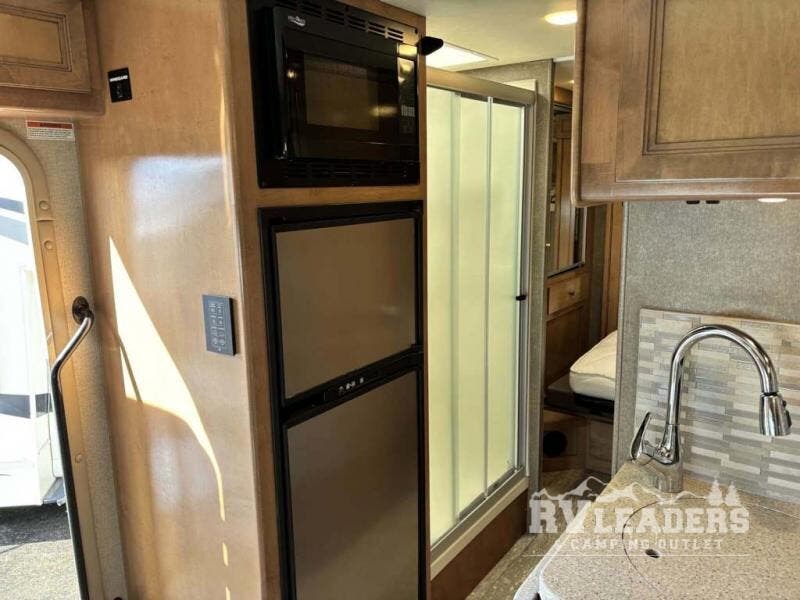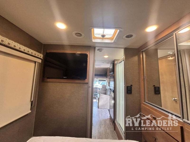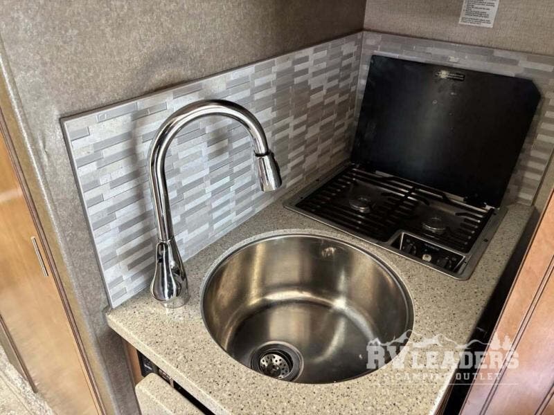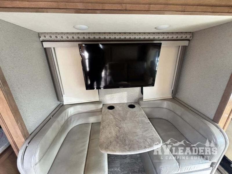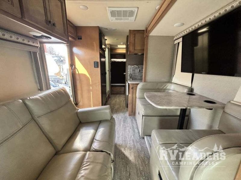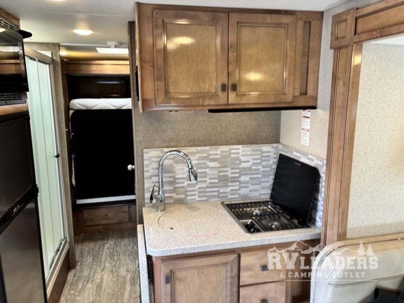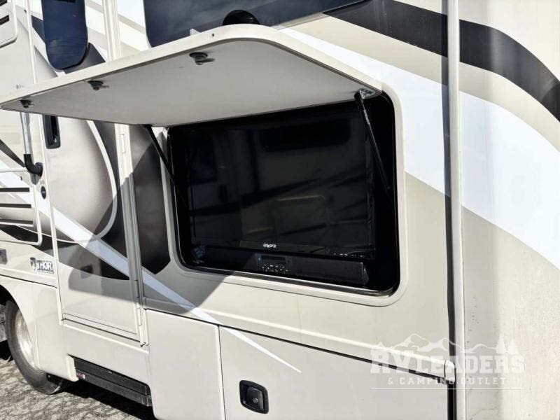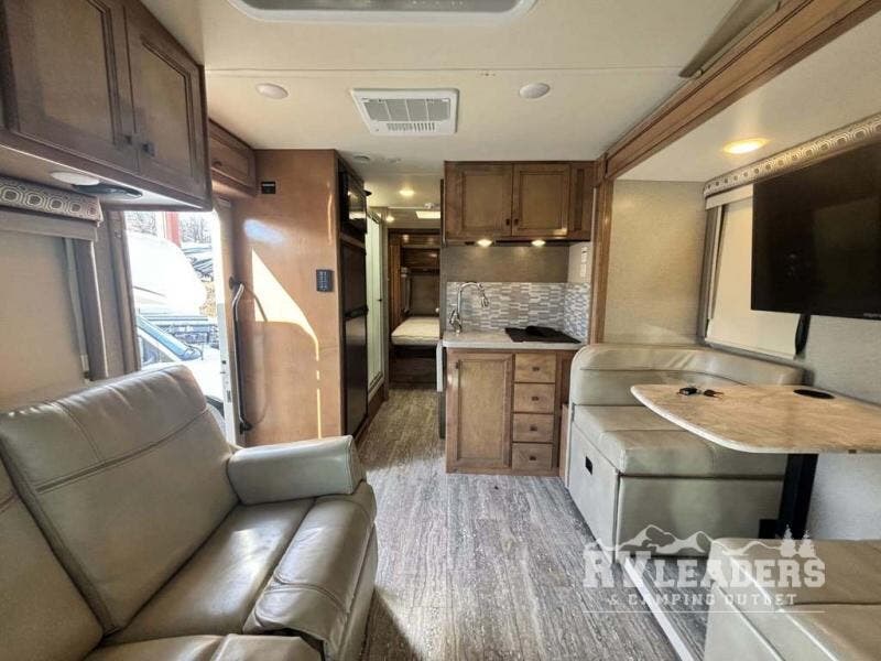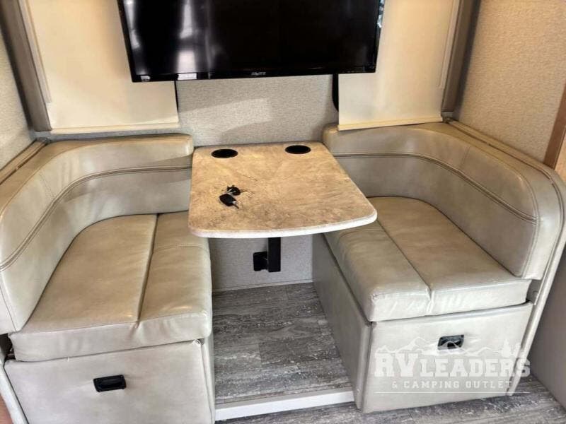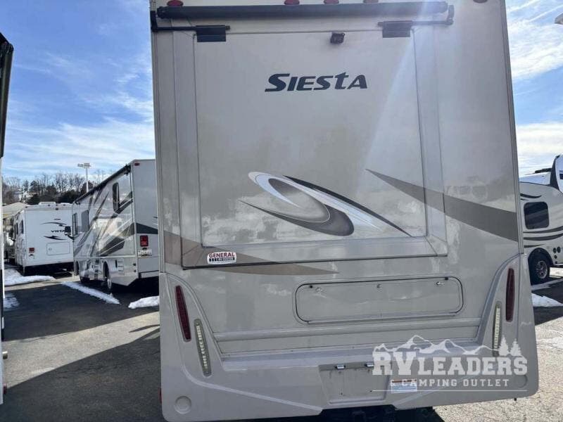Envision you and your family cruising down the highway to find adventure and new scenery. This Siesta Sprinter has comfortable captain's chairs that swivel, plus seat belts for two more riders. Now imagine you have decided on an RV park to stay for the week. You can make meals in the kitchen using the flip-up countertop while your spouse naps on the booth dinette and the kids watch a movie while relaxing on the theater seats with footrests. Once it is bedtime the kids can sleep on the cab-over bunk or on the dinette once folded down. You will enjoy your own semi-private bedroom with a unique rear slide out featuring a flip-up full bed, a privacy curtain, a closet and a 32" TV. There is a second interior TV, and an exterior TV for outdoor entertainment. Take a look, you will be sold!