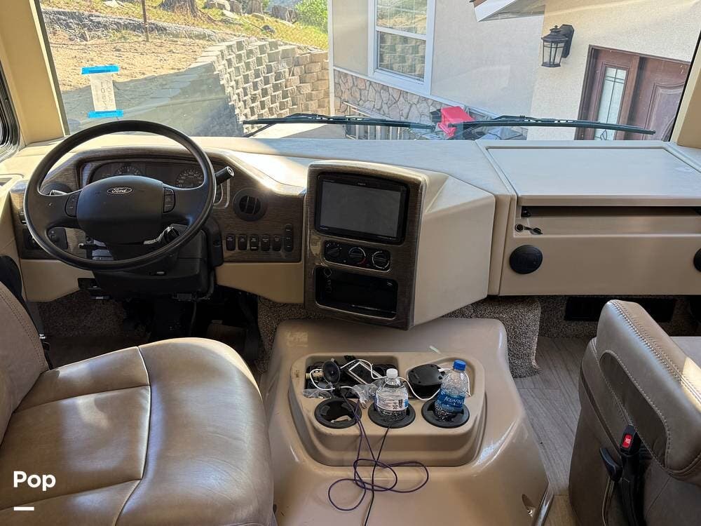 The main living area features a large slide-out that opens up the lounge and dinette, creating a bright, open feel. The driver and passenger captain's chairs swivel, turning the cockpit into part of the living space when parked.