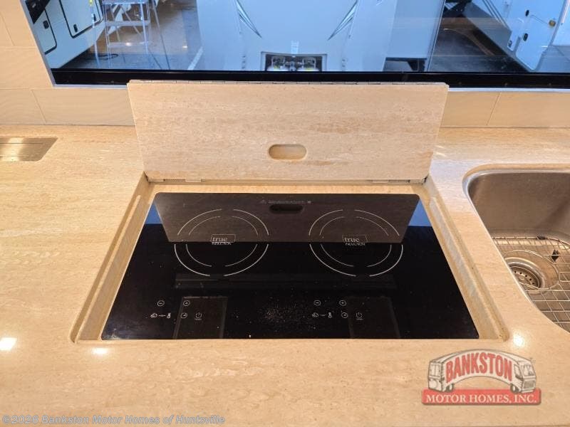 Step inside this Allegro Bus Class A diesel motorhome for complete comfort and luxury. The four slides in this model open up every space, and the sofa bed with an ottoman allows you to kick up your feet after driving all day. The dinette with a computer workstation will be a perfect place to get some work done while away from home, and if you need a quick nap, the king bed in the rear master suite provides a comfortable place to rest your head. Clean up in the dual-entry bath that features a dual-sink vanity for convenience, and then head to the kitchen to whip up some dinner. The expand-an-island will provide more counter space, and the two-burner induction cooktop and stainless steel convection microwave can cook up any meal you have planned.