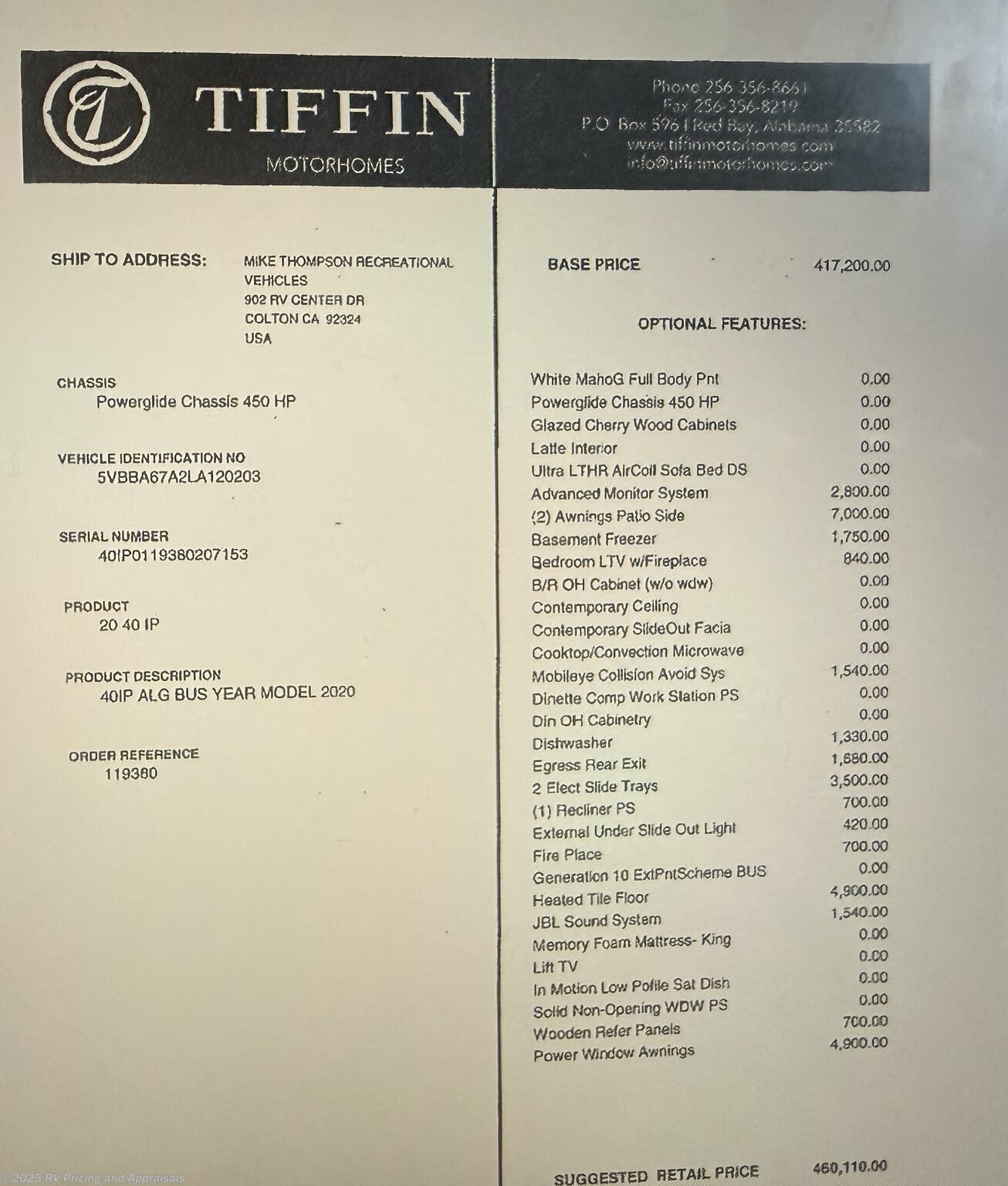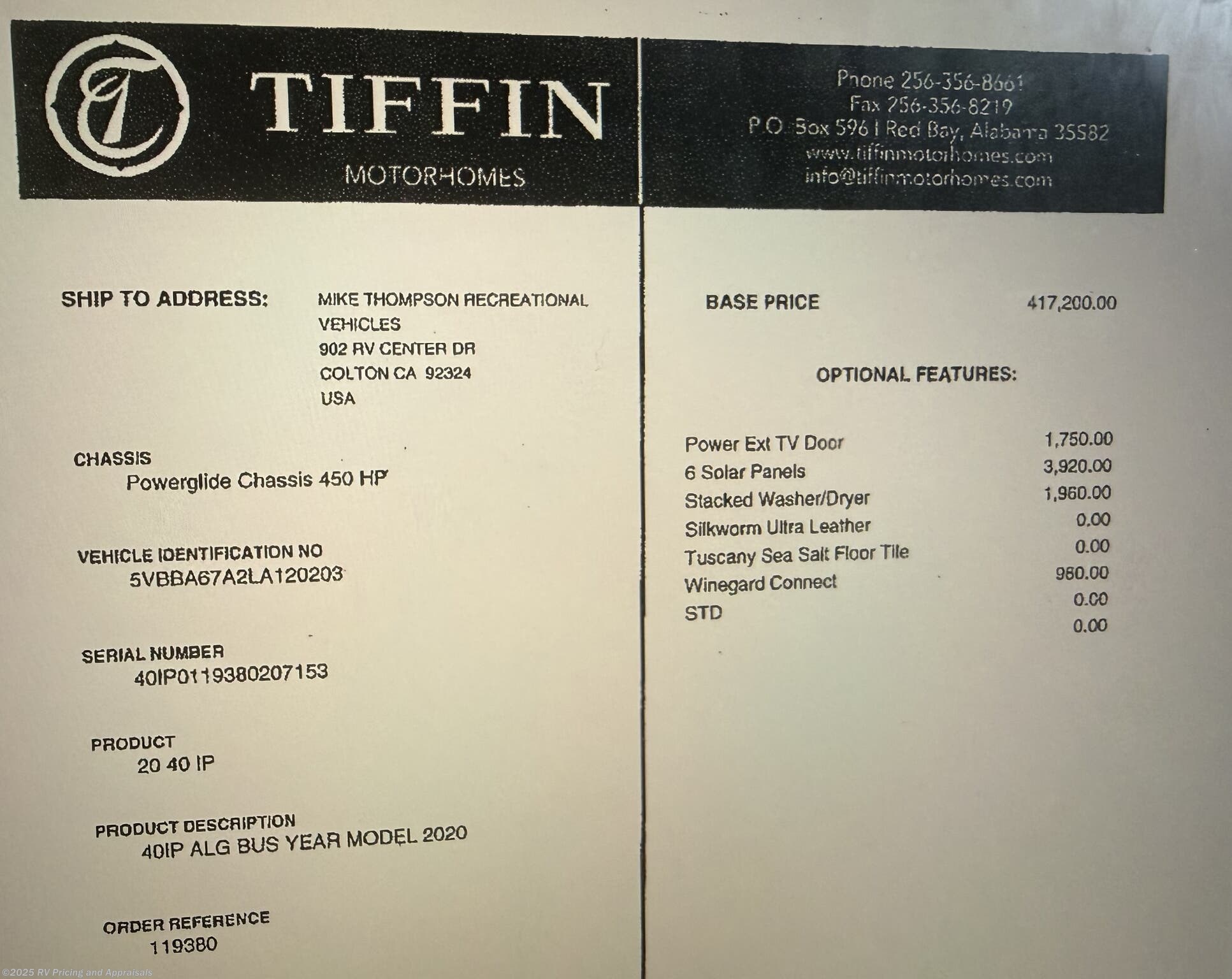 Request More Info on this 2020 Tiffin Allegro Bus 40IH- LOCATED IN DEVON, PA Offered for sale by RV Pricing and Appraisals