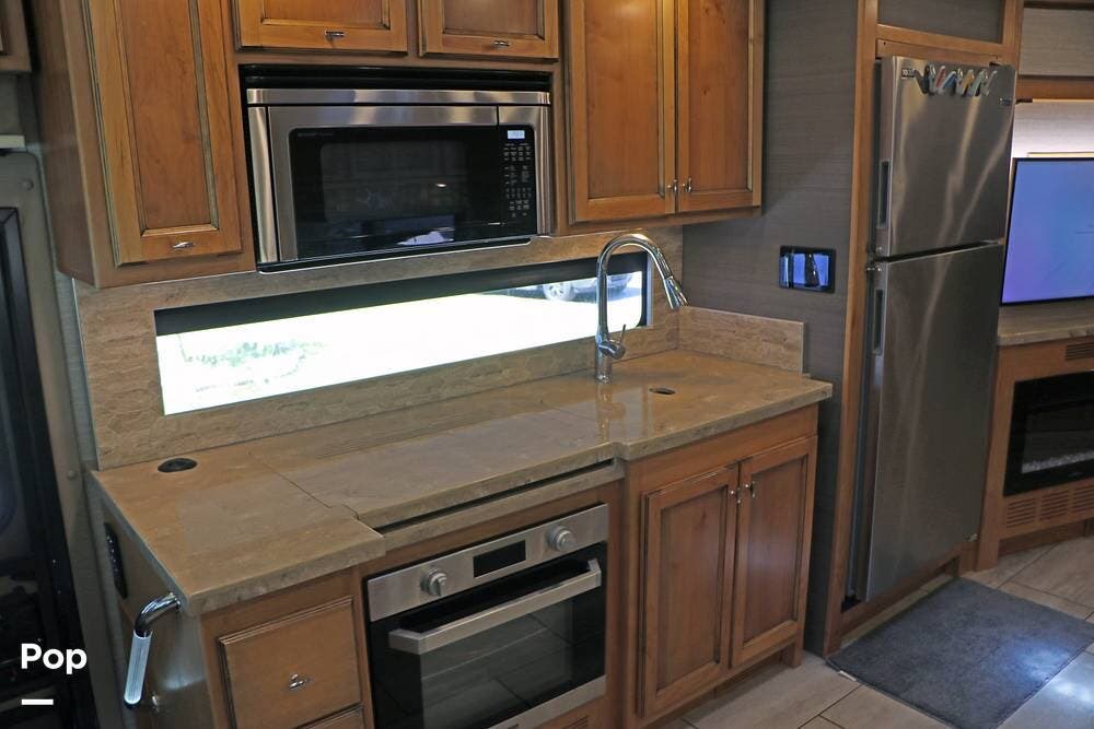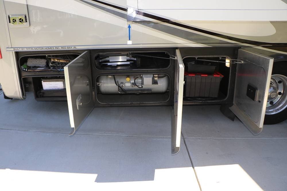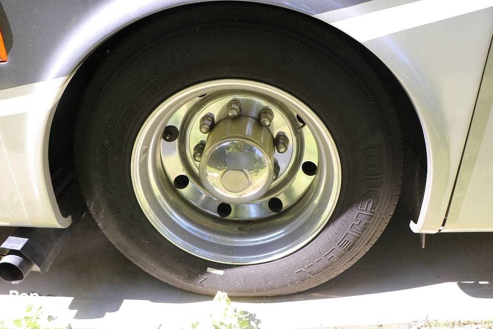 Upon approaching the coach, you'll notice the stunning 5-color Sunlit Sand Full Body Paint and the beautiful 22.5-inch Alcoa EVO Aluminum Wheels wrapped in Michelin XRV tires. Need basement storage? You have chosen the right coach. Cavernous aluminum basement storage doors line the entire coach, which opens to reveal pass-through storage in many of the bays. The wet bay and holding tanks are fully enclosed and heated.