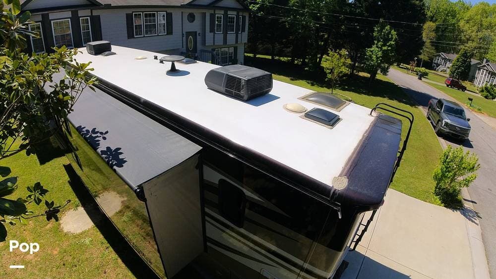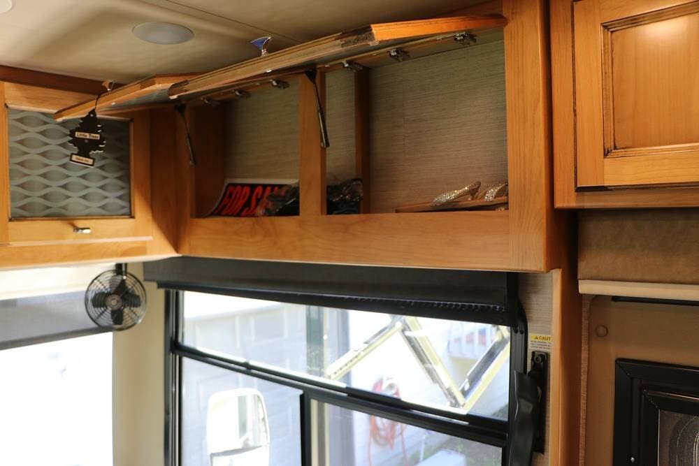 Step into the cockpit and notice the day/night and solar shades for the windshield and side windows. Turn the key and listen to the 6.8L Triton V10 fire up. Need power on the road? Flip the switch to engage the 7.0kW Cummins-Onan Gas Generator.