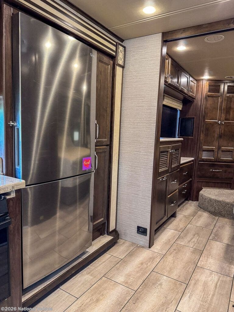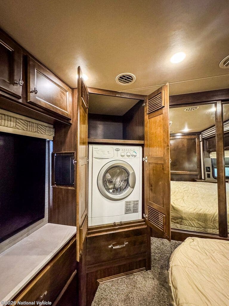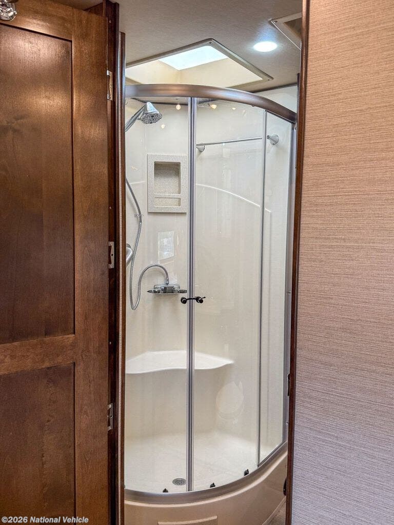 Powered by a Cummins diesel engine paired with an Allison transmission on a Freightliner chassis, this coach is equipped with air ride suspension, full air brakes, and an exhaust brake for confident performance in any terrain. A Safety Steer stabilizer bar enhances handling, while air leveling makes campsite setup fast and effortless. Up front, the tilt/telescoping wheel and power driver/passenger seats provide comfort for long days behind the wheel.