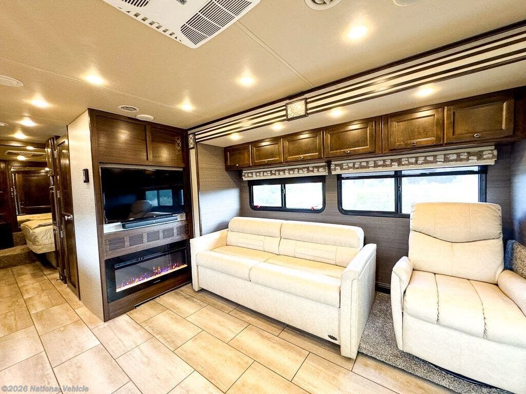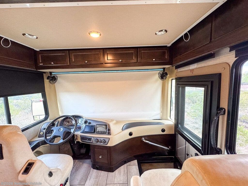 Technology and comfort are front and center with in-dash navigation and power solar/privacy shades throughout. All coach batteries have been recently replaced, adding value and peace of mind.