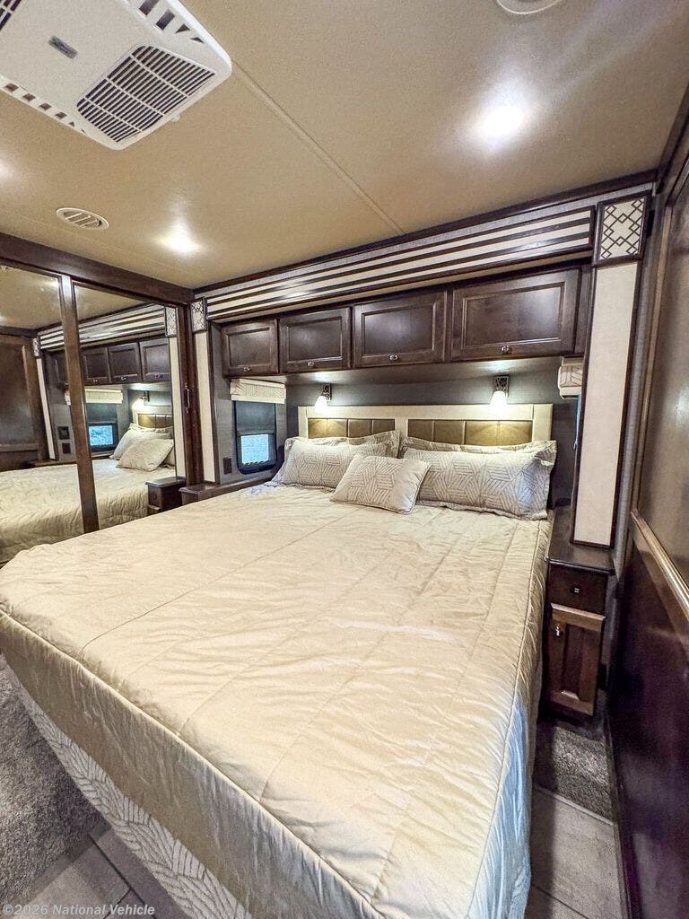 Outside, you?ll find full-body paint, a large power awning, exterior TV, and expansive basement storage for all your gear. A Blue Ox tow bar paired with the Air Force One braking system makes towing safe, simple, and ready to go from day one.