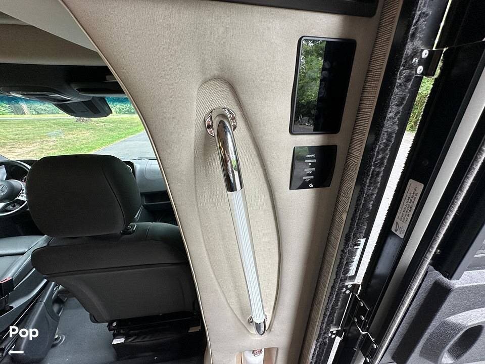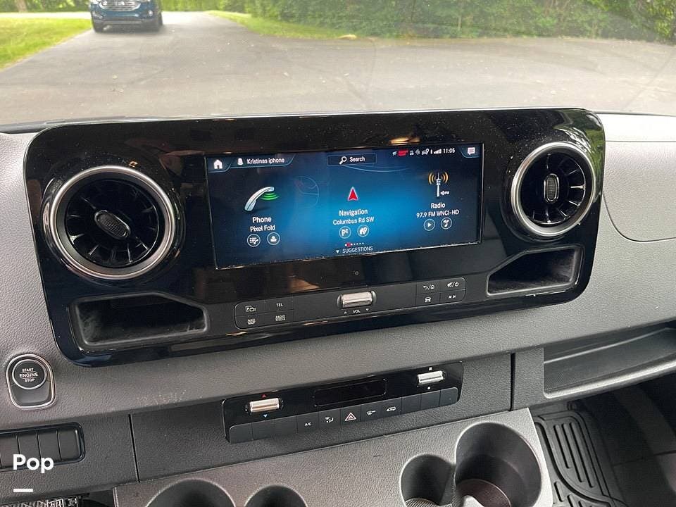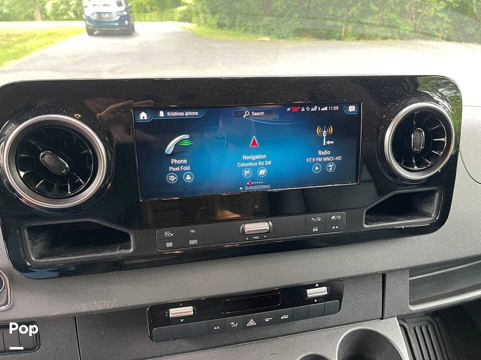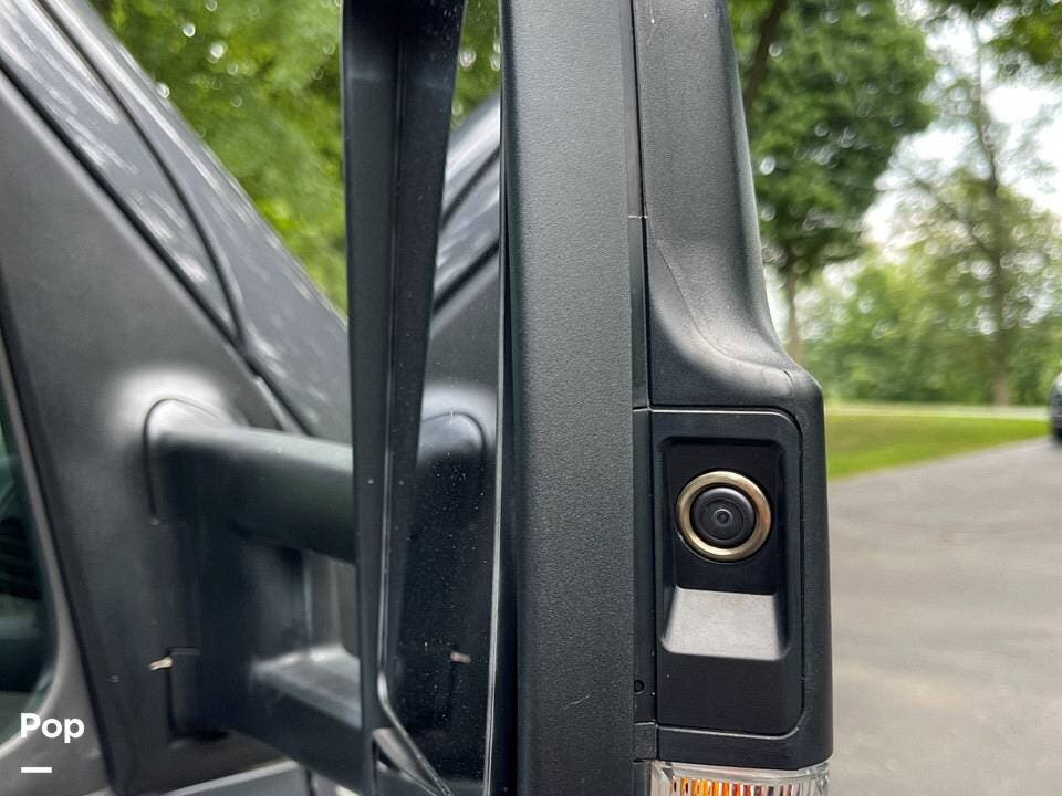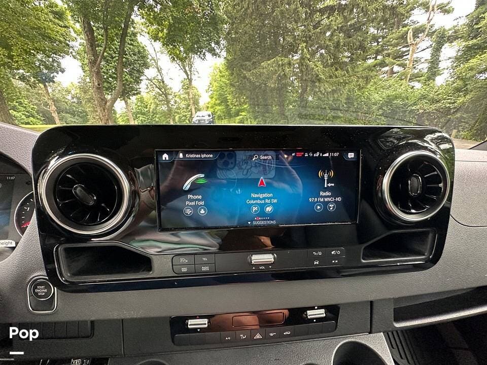 Exterior features include a full-wall slide-out, an electric awning with LED lighting and a high wind sensor with automatic return, and large exterior storage compartments on both sides of the coach for all your gear. Safety and technology are top-notch, with backup and side cameras, Mercedes-Benz GPS navigation, and a digital control center with a built-in GPS for easy routing and a large screen format.