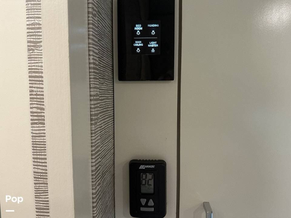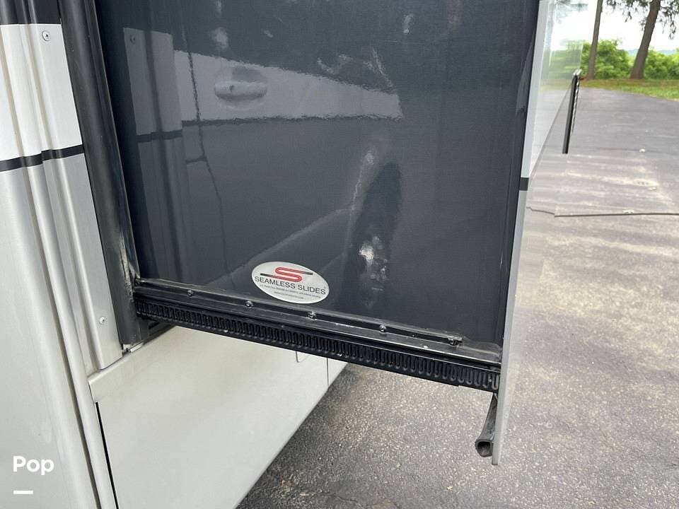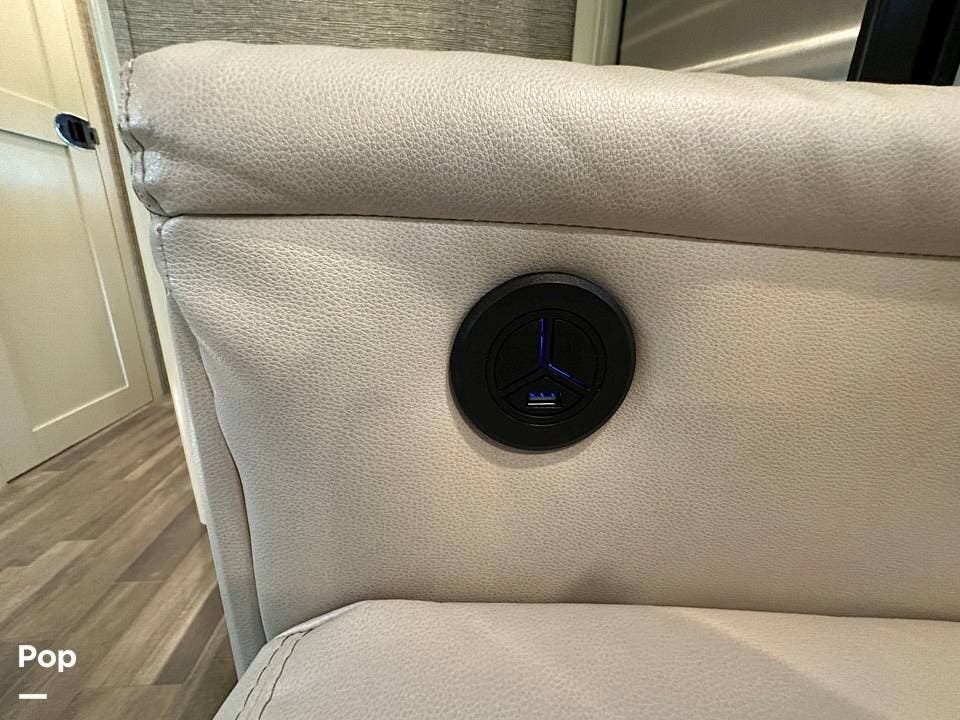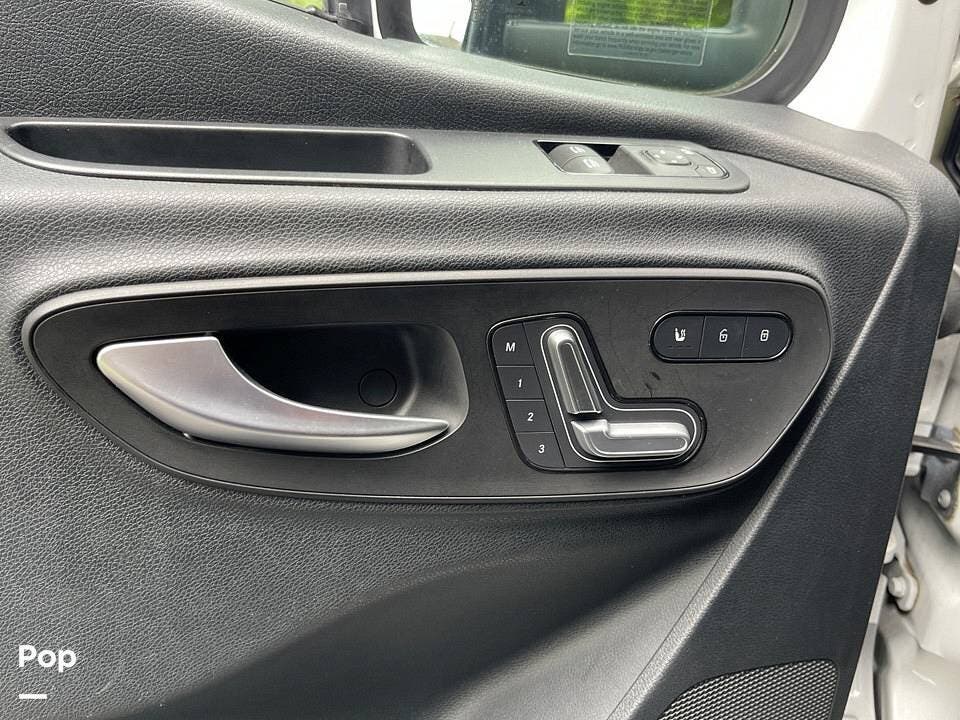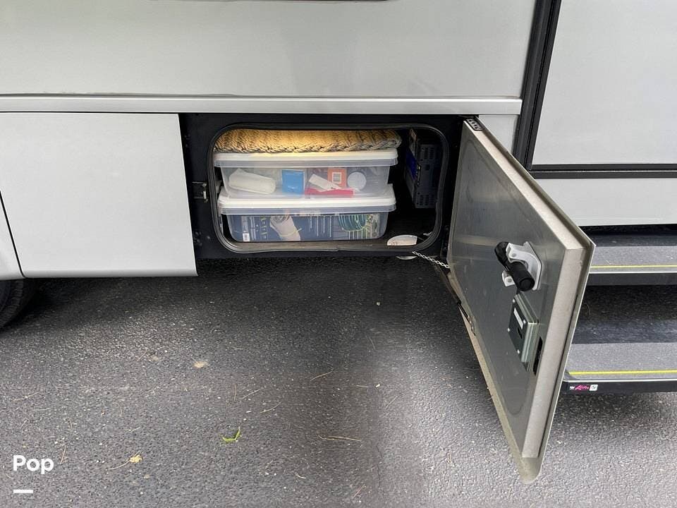 Exterior features include a full-wall slide-out, an electric awning with LED lighting and a high wind sensor with automatic return, and large exterior storage compartments on both sides of the coach for all your gear. Safety and technology are top-notch, with backup and side cameras, Mercedes-Benz GPS navigation, and a digital control center with a built-in GPS for easy routing and a large screen format.