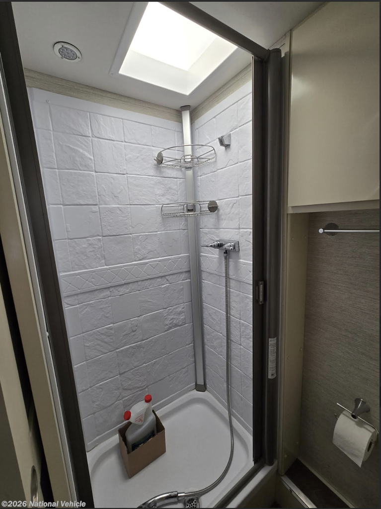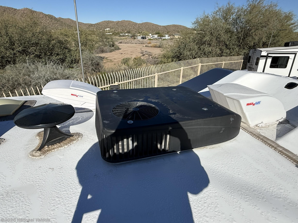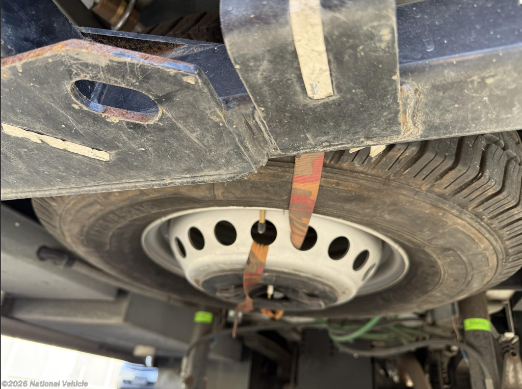 Inside, thoughtful touches elevate everyday living. A central vacuum system makes cleanup quick and easy, and two new MaxxAir roof vents with rain hoods improve airflow while allowing ventilation in any weather. An underbody spare tire mount with cable winch has been professionally installed, adding both safety and practicality without sacrificing storage or accessibility.