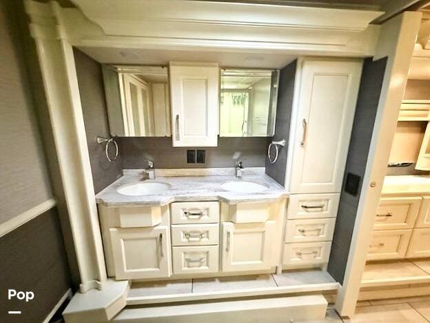 Luxury coach with striking modern interior! Gourmet kitchen, dishwasher, washer and dyer, private bedroom suite, double vanity!