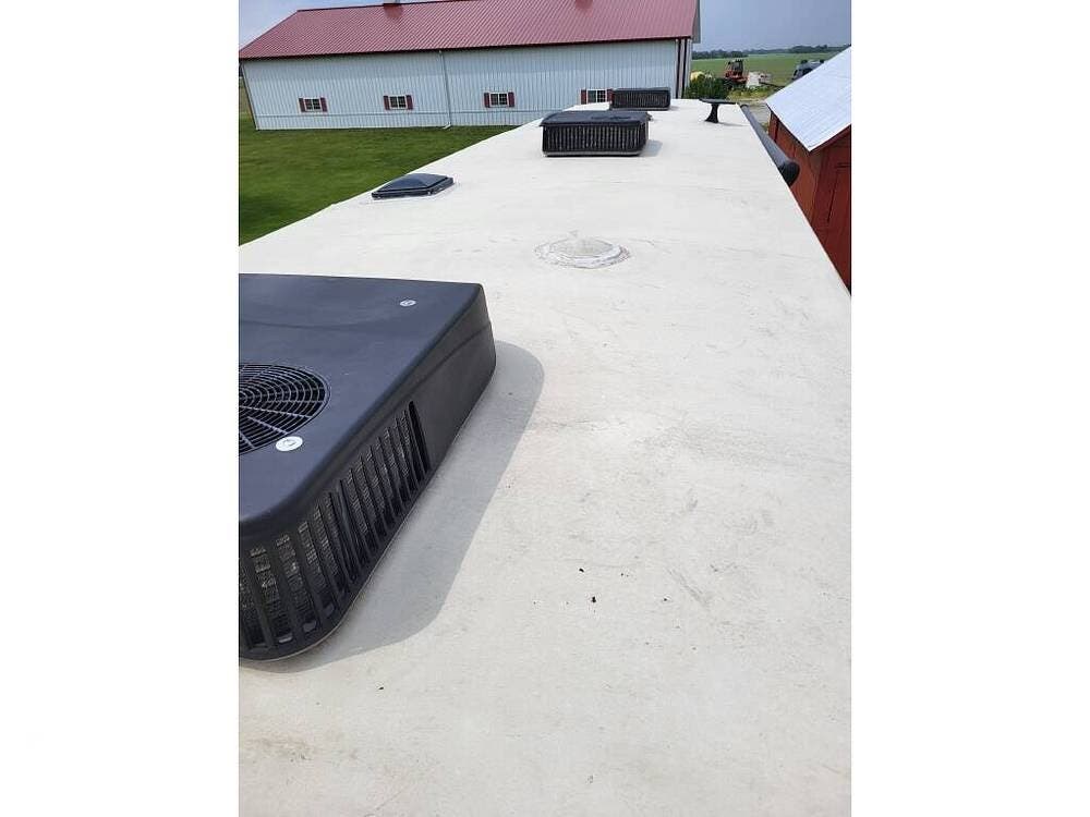 The unit has three A/C units with heat-pumps, a 42,000 BTU furnace, and auto-leveling jacks.