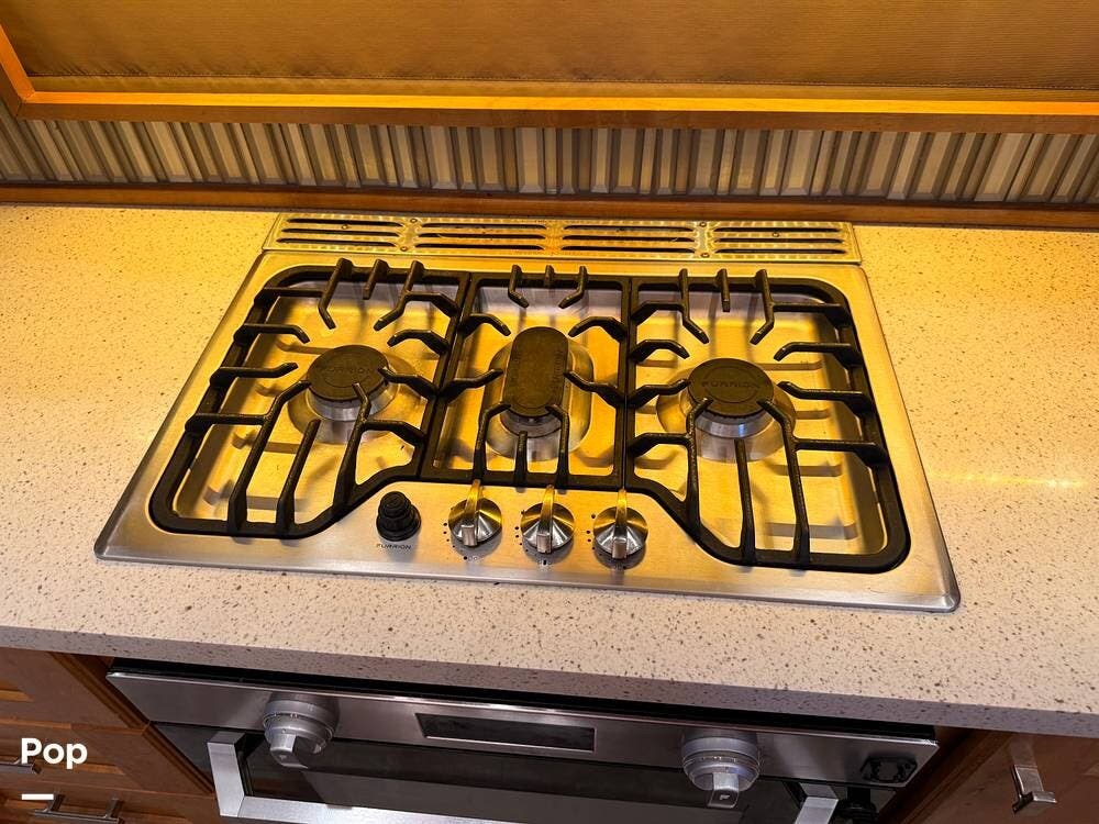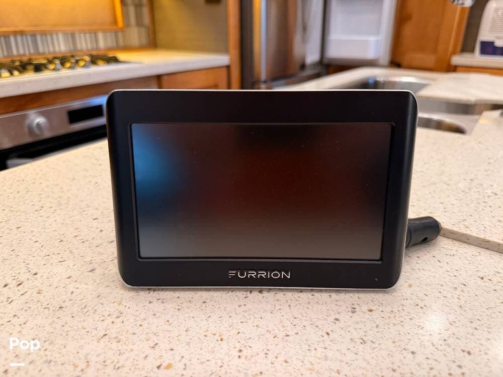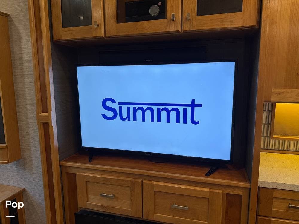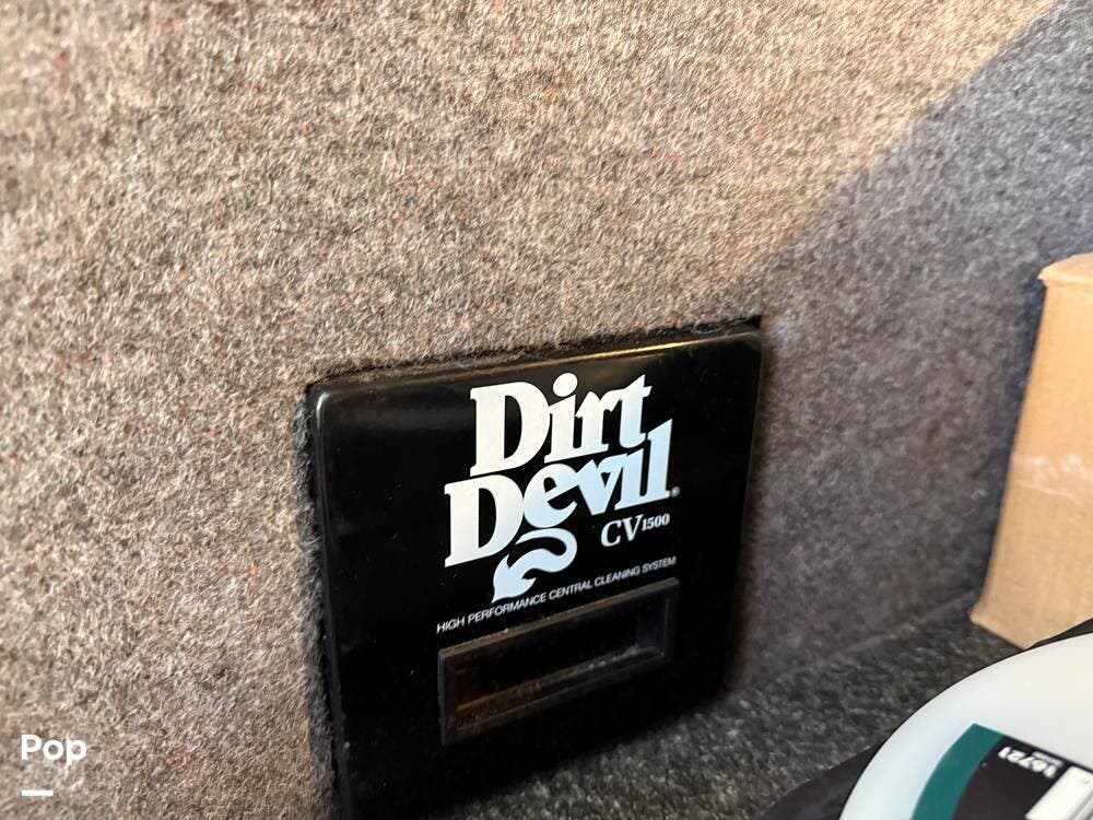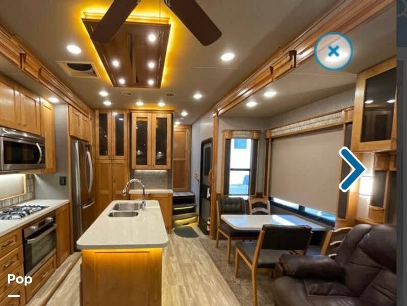 This unit offers three air conditioners and two heat pumps, making it a perfect choice for year-round living for those who need that option. This RV has stackable washer and dryer units, a full-size LG fridge, a king-size bed, and a central vac.