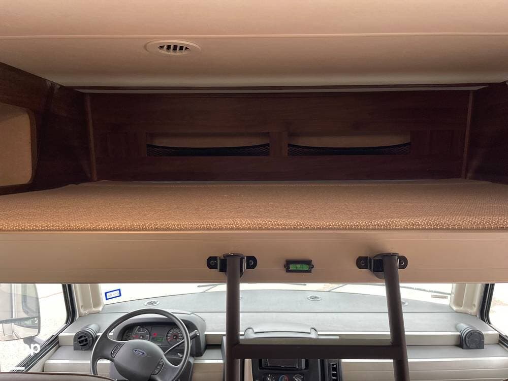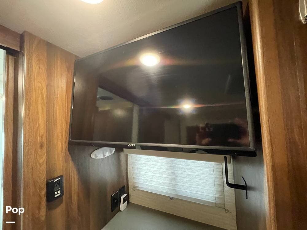 This Intent sleeps eight with a nice queen master bed, two sofa sleepers, a dinette sleeper, and a remote cab-over sleeper as well. It has 4TVs and a stereo with both indoor and exterior speakers. It also has one full bath split in two by a hallway with a spotless large shower on one side and a toilet and large sink and mirror on the other.