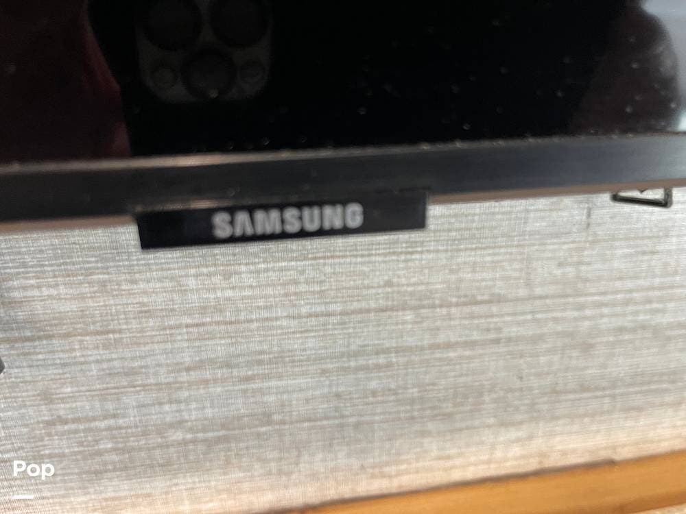 The kitchen has a large freezer/fridge, a 3-burner stove, oven, convection microwave, and an exterior kitchen with a fridge and TV for watching a game or sunset.