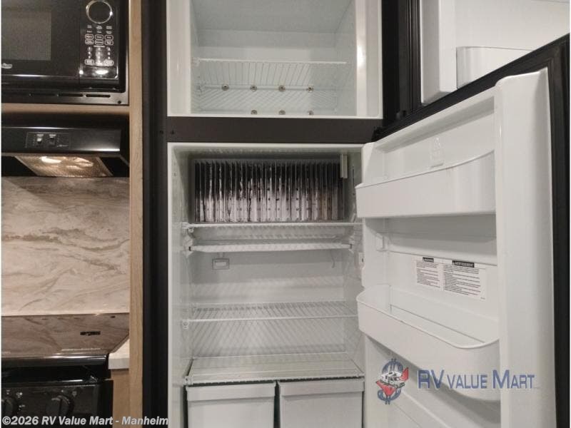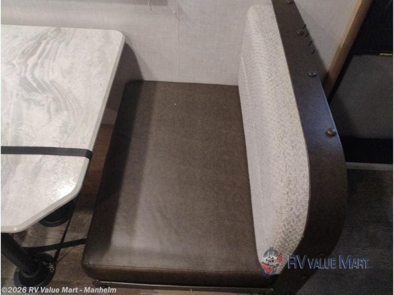 This is the perfect couple's trailer with space for an overnight guest on the booth dinette. Every morning you can prepare breakfast on the three-burner range or make something quick in the microwave oven before heading out on a bike ride. Get cleaned up in the rear bath that includes a 24" x 24" shower, a toilet, and a vanity. The gas/electric refrigerator can hold all your food for the weekend and you'll find plenty of storage space for all your valuables.