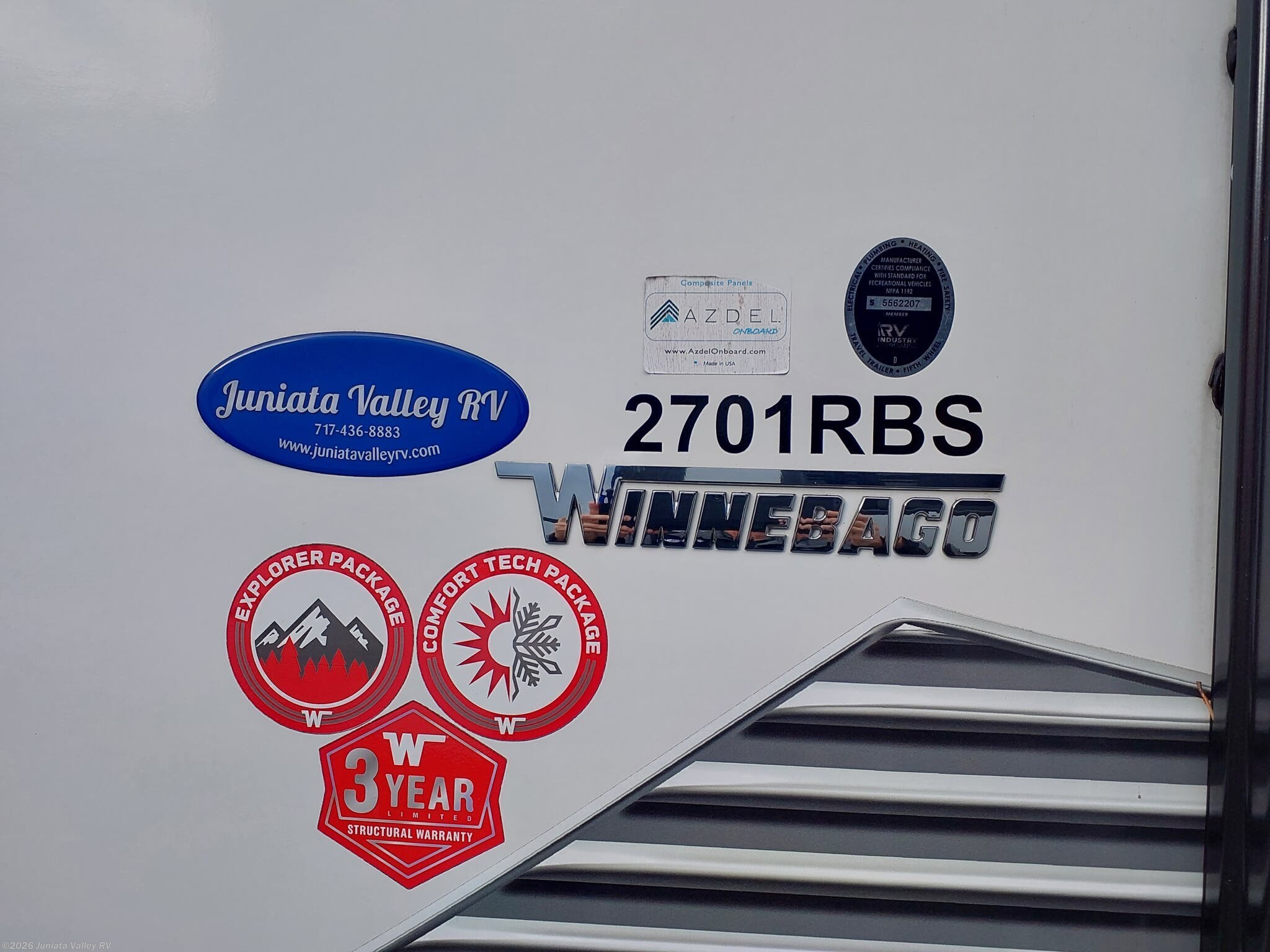 Juniata Valley RV does not have any hidden costs of any kind. Our price includes all dealer prep, filled LP tanks, new 12 volt deep cycle batteries and battery boxes, spetic hose, state inspection, and a complete demonstration to show you how to use your new RV.