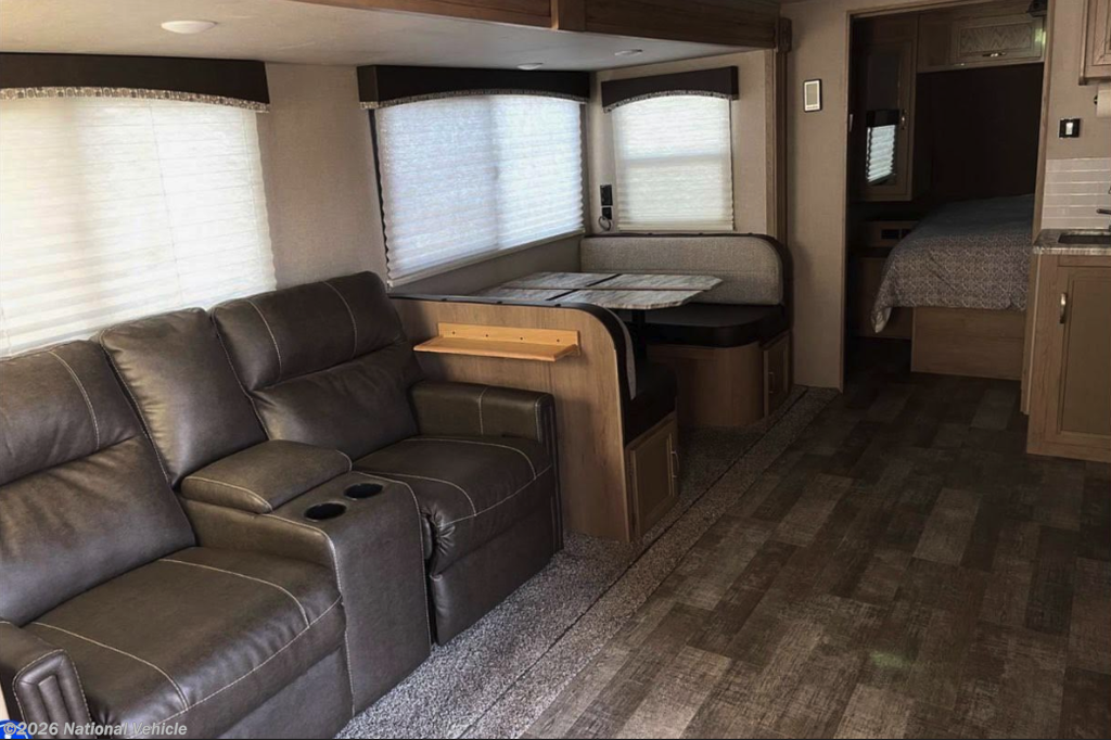 The 2020 Winnebago Minnie 2701RBS is a 29' 8" travel trailer that blends thoughtful design, everyday comfort, and reliable performance to elevate your road-travel experience. From the moment you step inside, you?ll appreciate the well-planned floorplan that maximizes space and creates a welcoming atmosphere. The living area offers comfortable seating and abundant storage, with large windows that bring in natural light and scenic views. The fully equipped kitchen features quality appliances, generous counter space, and plenty of cabinetry-perfect for preparing meals on the road or at the campsite. The private bedroom provides a cozy retreat at the end of the day, and the full bathroom adds residential-style convenience to your travels. With durable construction, smart storage inside and out, and a layout designed for both functionality and comfort, the Minnie 2701RBS is ideal for weekend getaways, extended trips, or any journey in between. Whether you?re exploring new destinations or returning to favorite spots, this Winnebago travel trailer delivers the perfect blend of performance and livability.