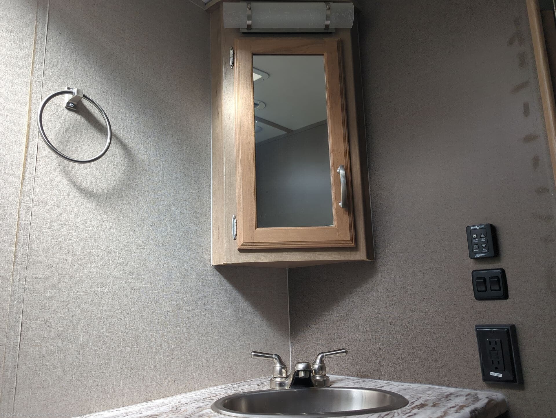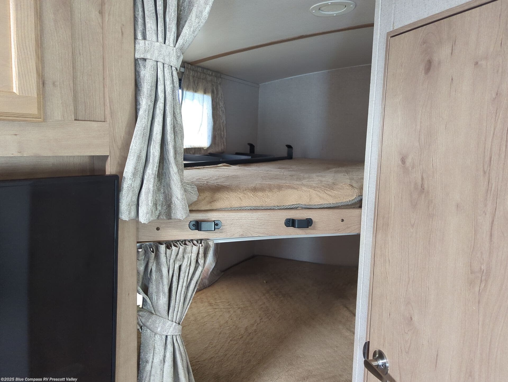 The kids are going to love this Minnie Plus travel trailer that includes bunk beds! The full bathroom is in the back right next to the bunks which makes it easier for the little ones to use the restroom at night. Dual opposing slides in the living and kitchen area are what give this unit an open floorplan, and the kitchen island brings everything together. Bring along all your comforts from home and clothes for the week because this model features a large wardrobe and a pantry for dry goods.