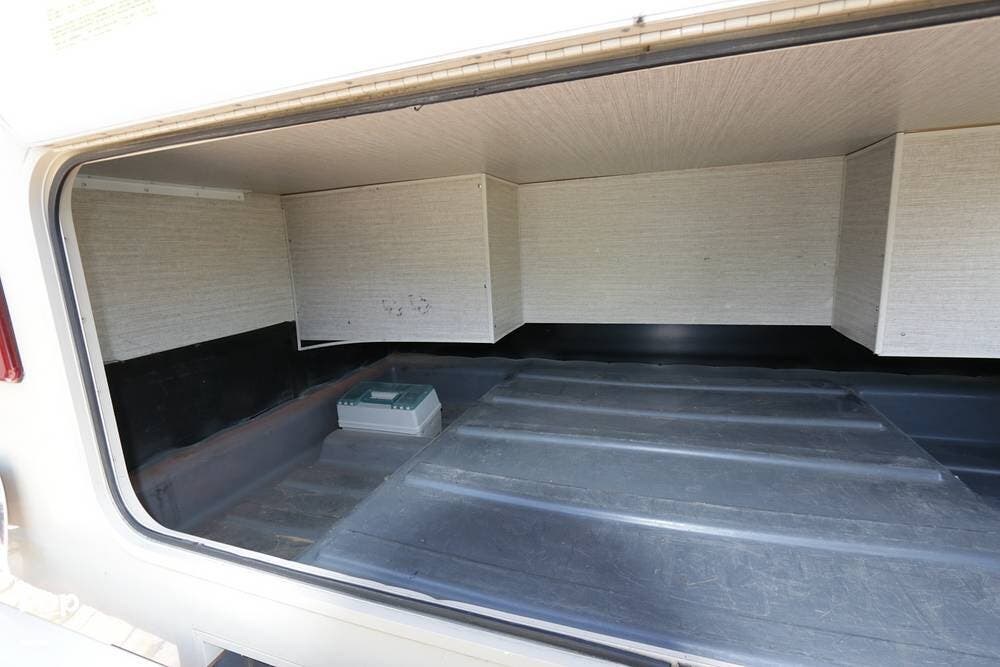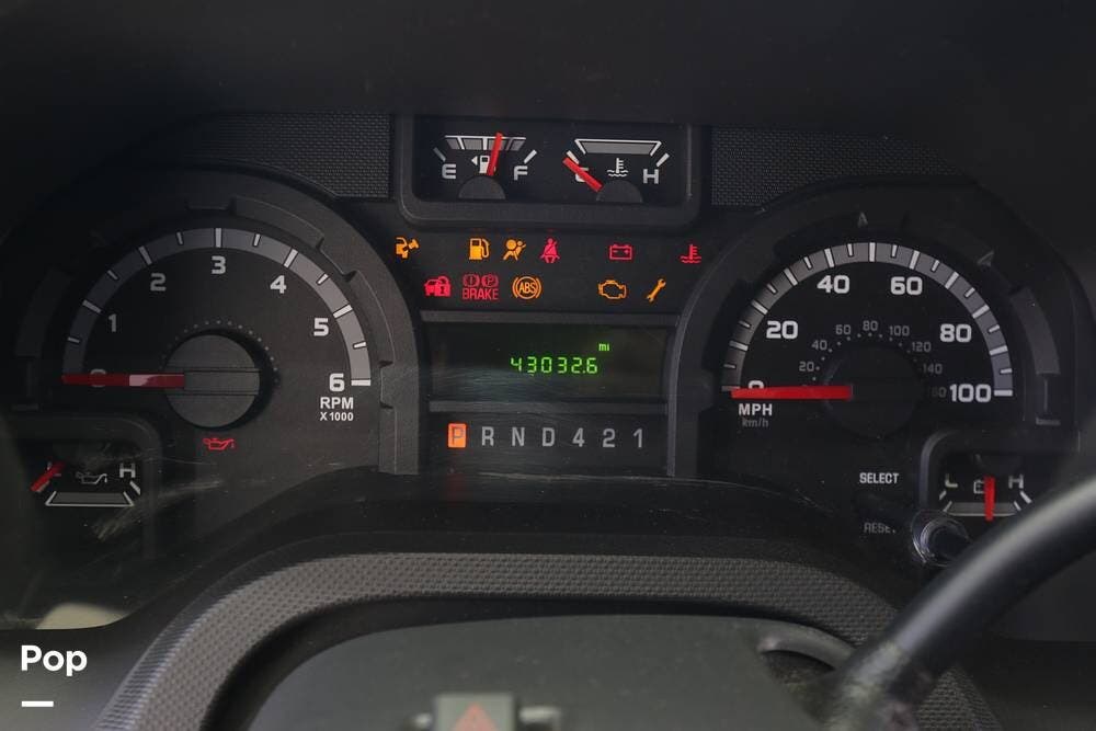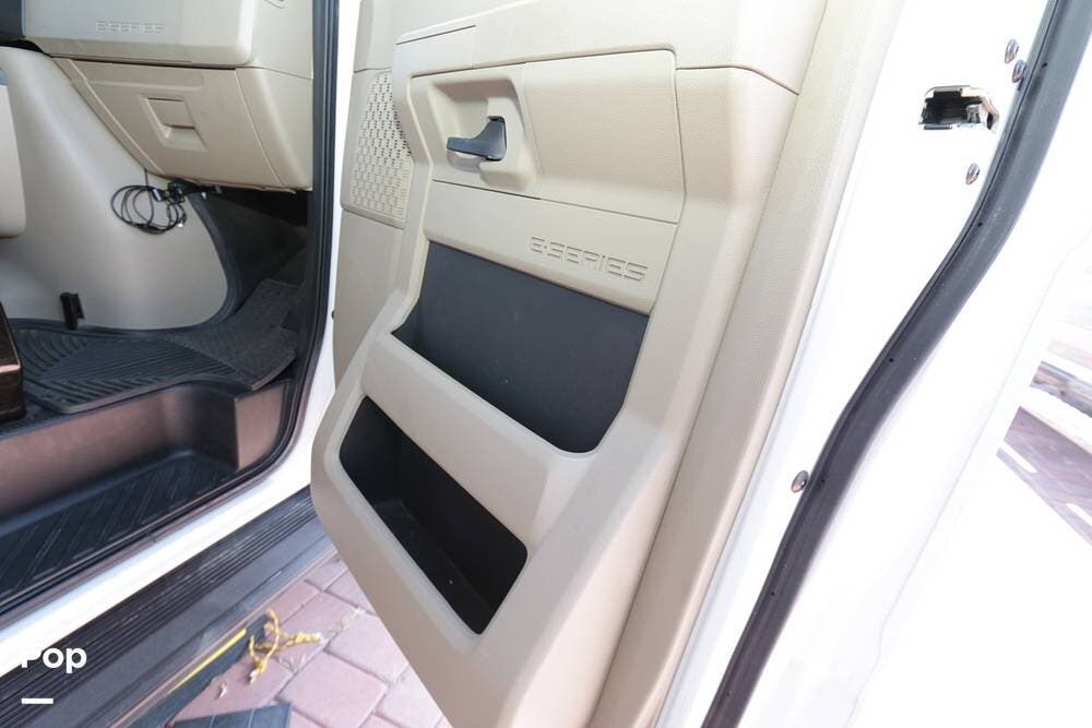 Dressed in beige and white and built on a Ford 450 chassis. Triton V-10 power and 7500 lbs of towing. Two hundred watts of solar on the roof and a 4000-watt Onan generator for boon-docking adventures.