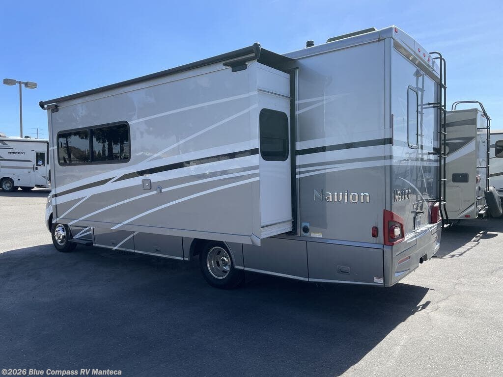 The Winnebago Navion Class C diesel motorhome provides freedom of the open road at every turn. Each model includes advanced safety features, such as brake assist, lane keeping assist, and the MBUX touchscreen infotainment system with voice interference, navigation, plus so much more! The 3,600-watt Cummins Onan MicroQuiet LP generator and the 200-watt solar panel allow you to go off the beaten path for extended adventuring. Inside, you'll enjoy vinyl flooring throughout, 110V/12V/USB charging stations, a 32" HDTV, plus laminate countertops in the galley. When you're ready to enjoy some fresh air, the power awning with LED lights will provide a comfortable outdoor living space, and the automatic entrance door step will make it easy to enter back in when it's time for bed.