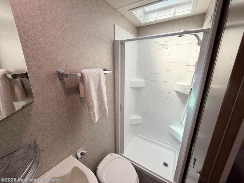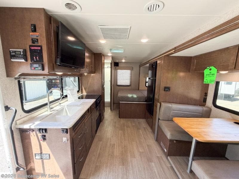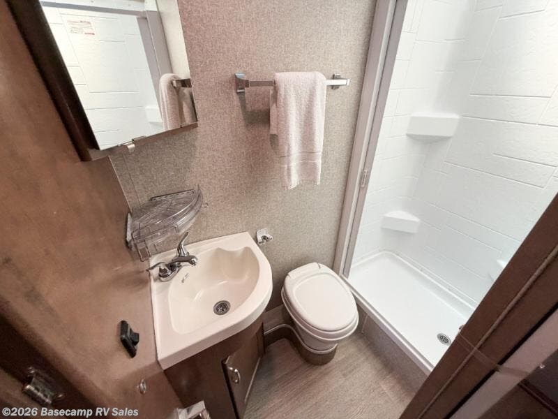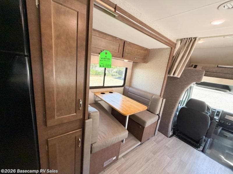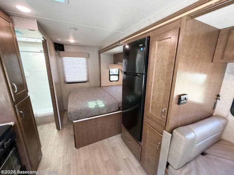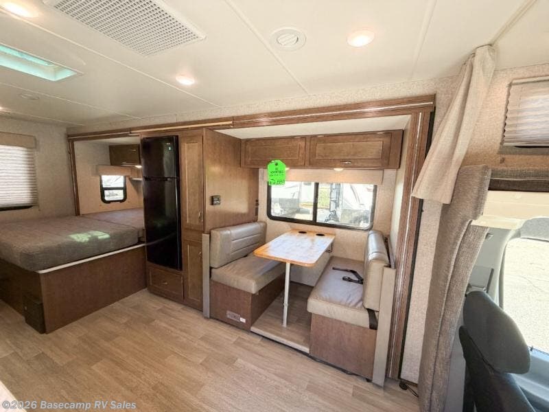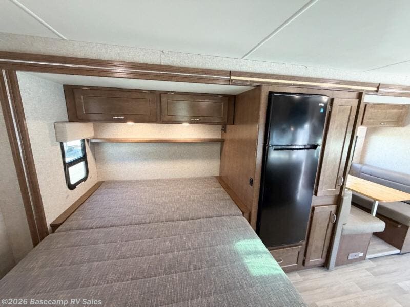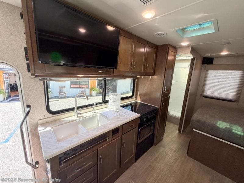 It's time to enjoy each adventure with this spacious motorhome thanks to the large slide out along one side. You will be able to easily move about to get to the rear queen bed with nightstands and the rear full bathroom. The space savings, sliding bi-fold door allows you easy access to the shower, toilet and sink. You can dine at the booth dinette or choose the theater seating option with pedestal table in its place. The two multi-use storage areas, the kitchen cabinets and the exterior storage give you even more places to stow your things. And when you want to relax you can choose the dinette or the captain's chairs. The overhead cab bed will be the kids favorite place to sleep, and you will surely appreciate having your own kitchen amenities to whip up meals.