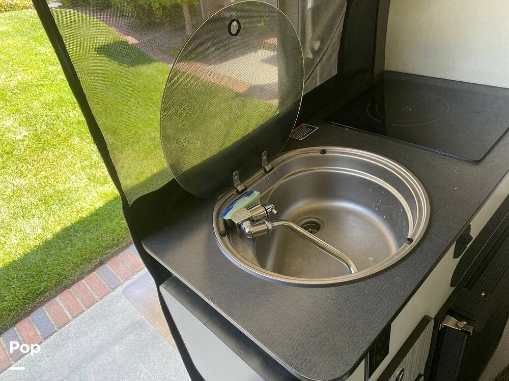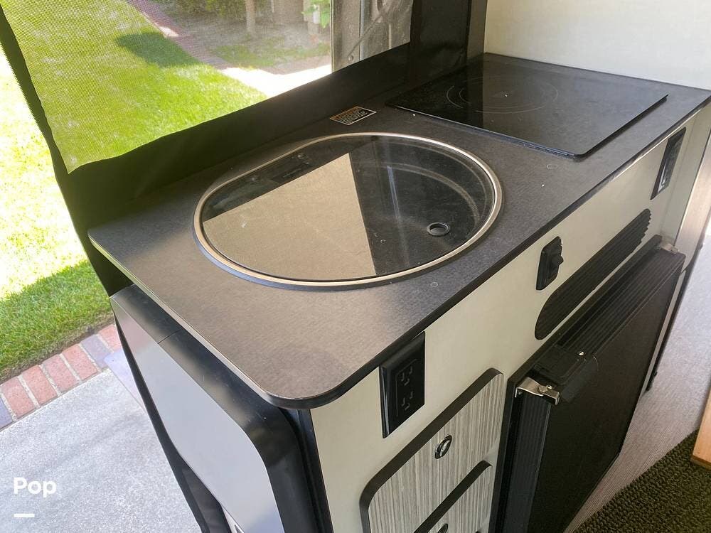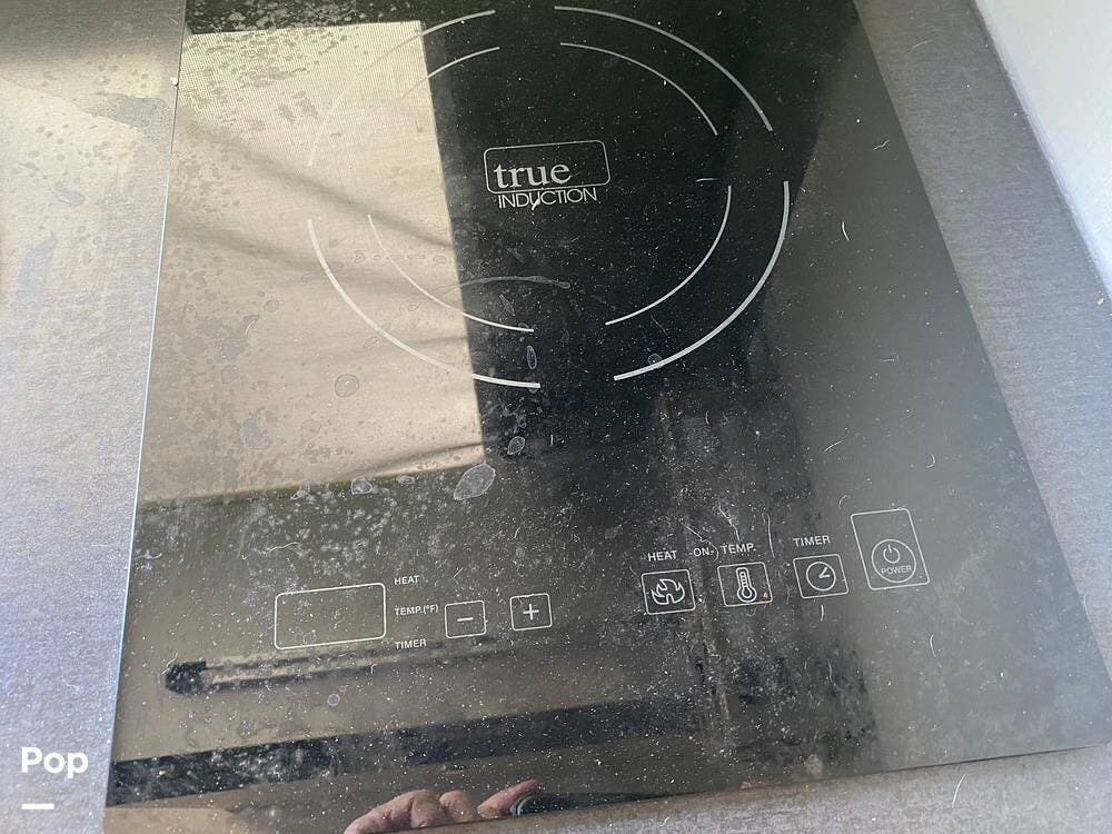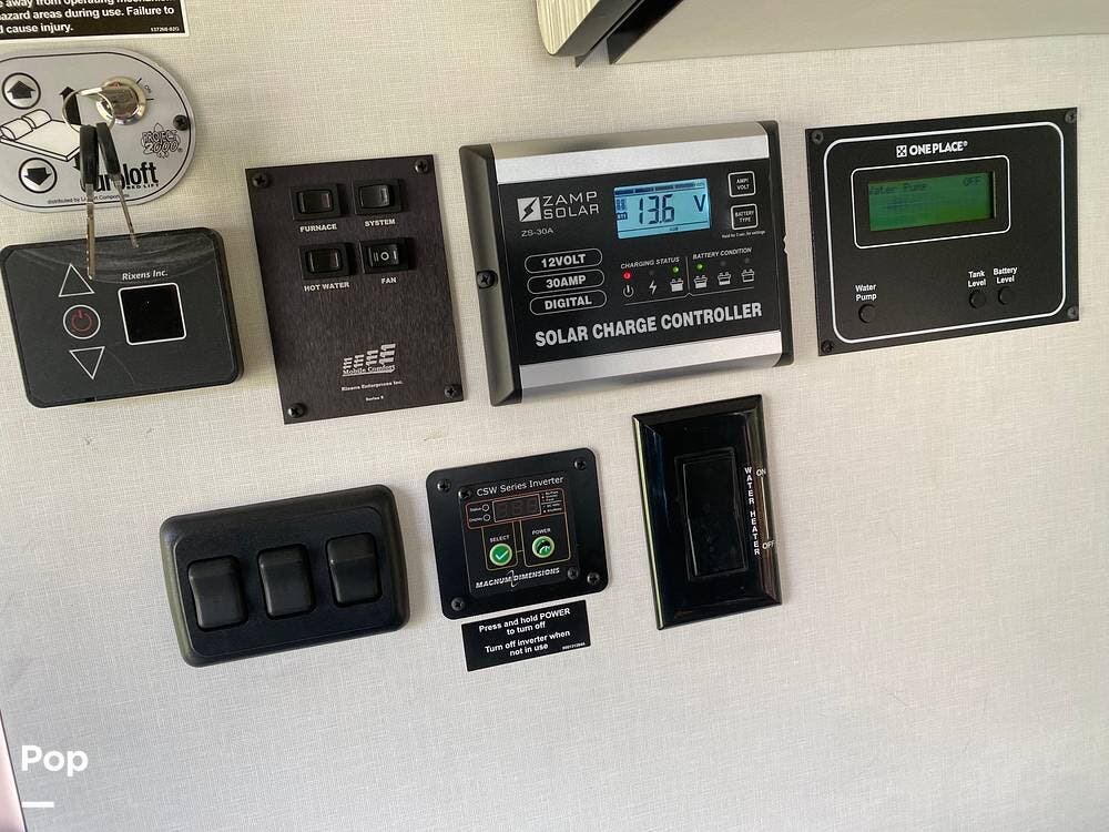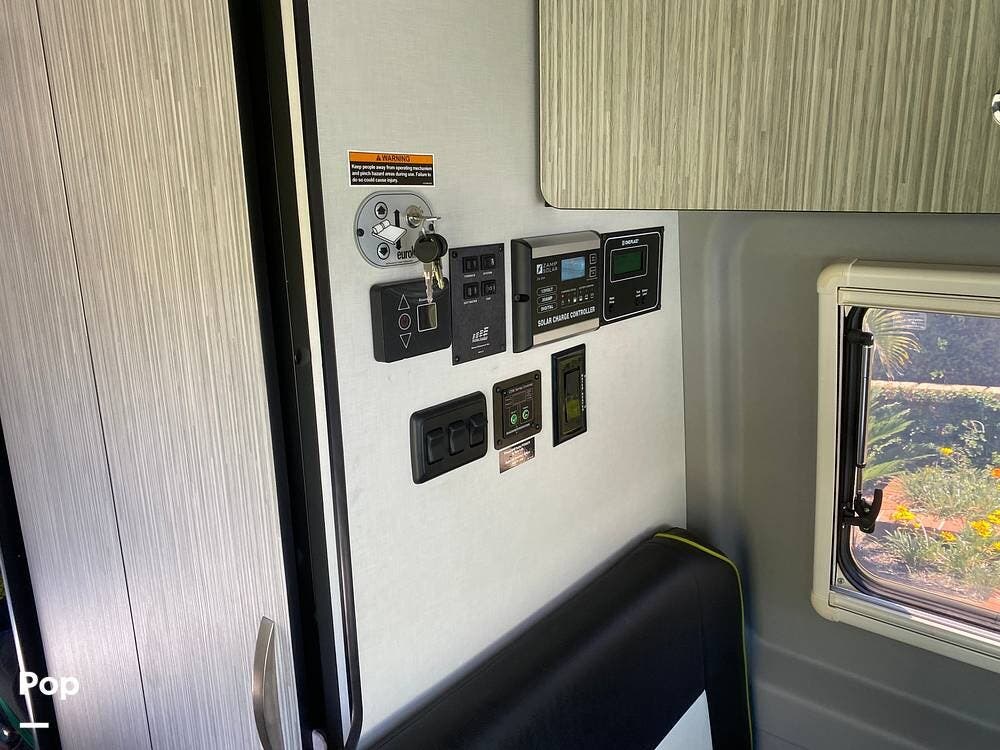 This 44E features a solar panel, backup camera, keyless entry, hydronic heating system, Nova Kool refrigerator, and single-burner induction range.