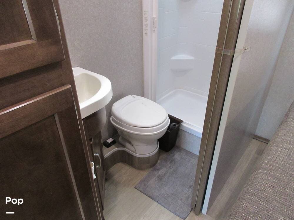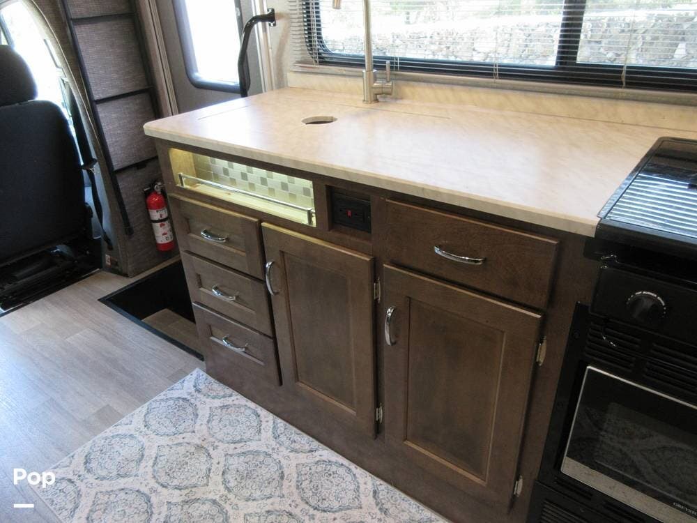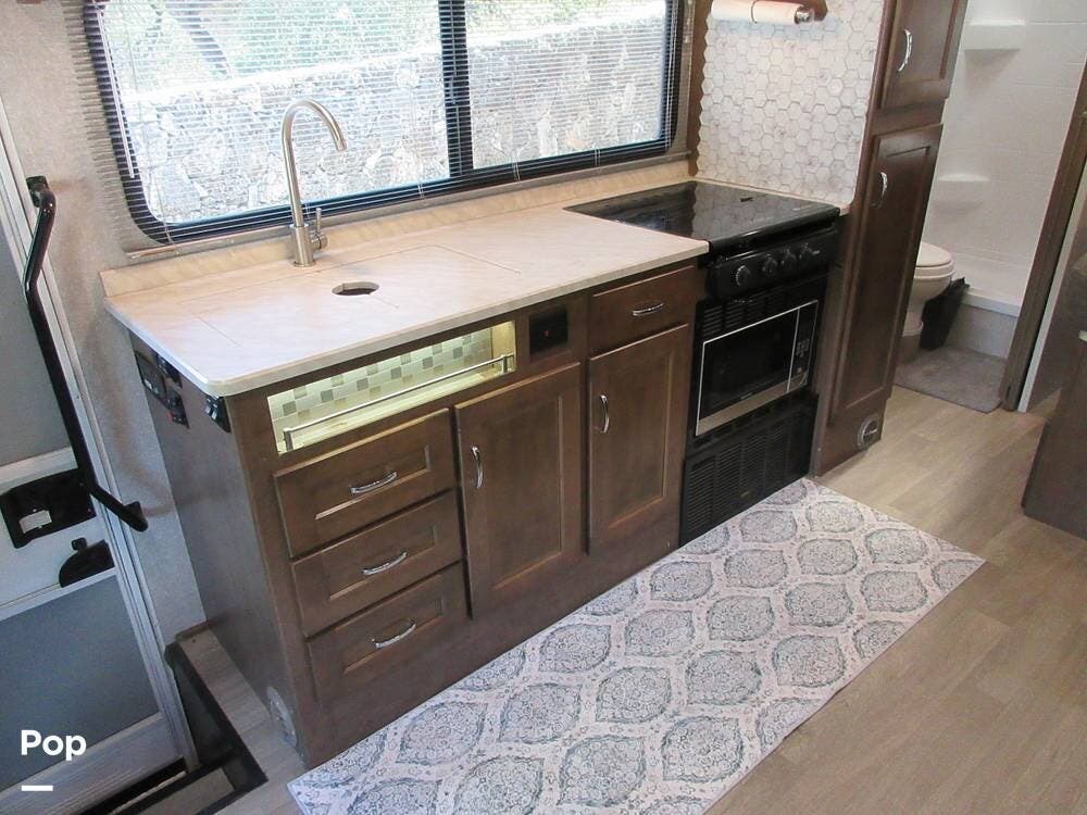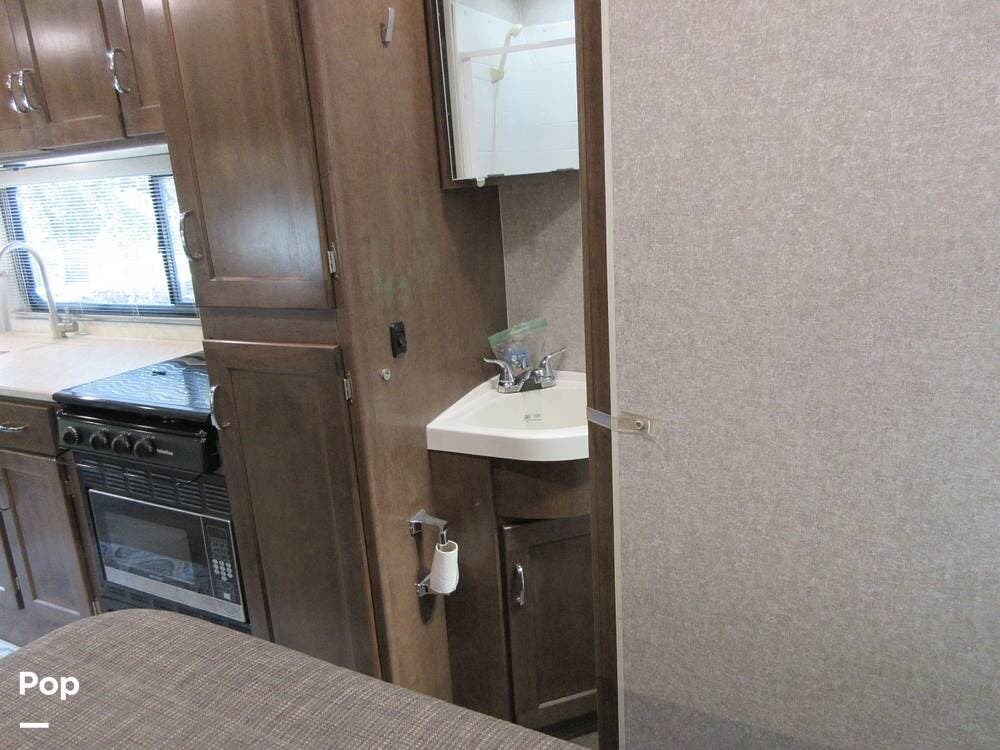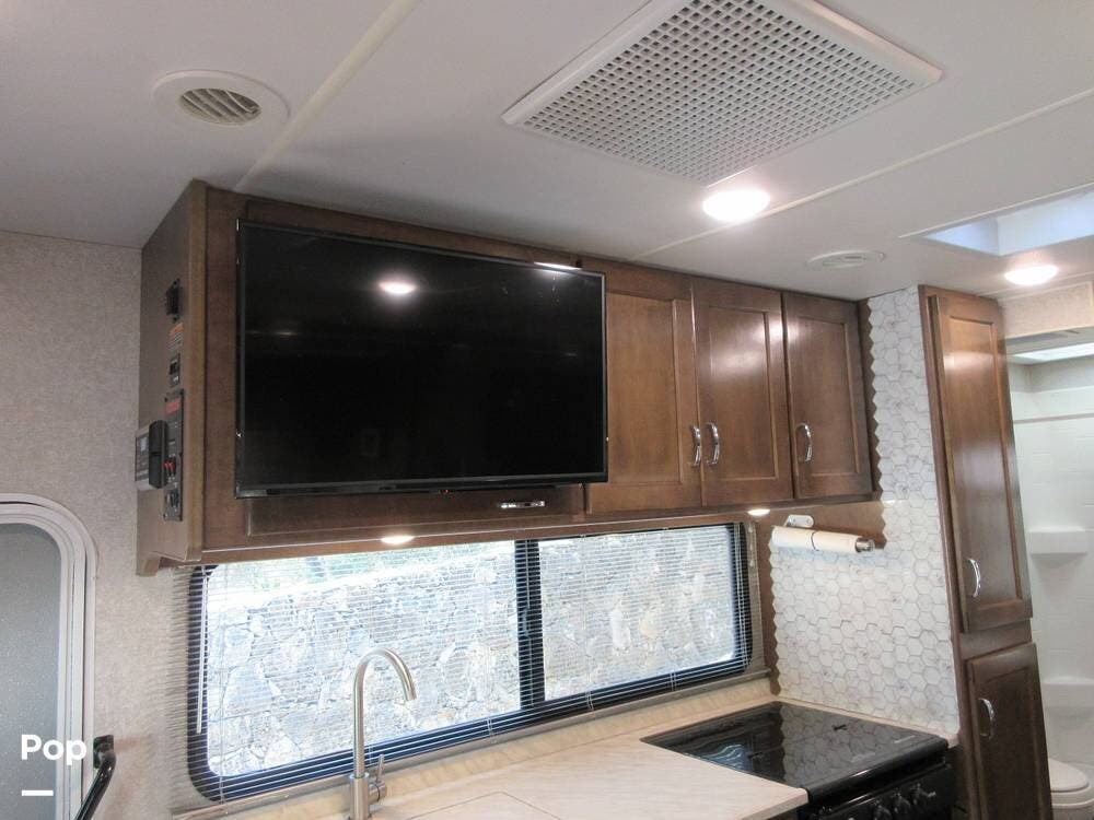 Entertainment is available via the TV in the living area and the in-dash stereo. A backup camera/monitor system also provides safety and convenience when driving.