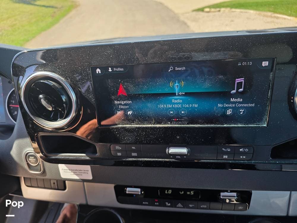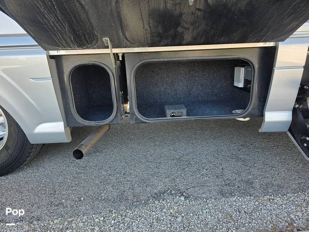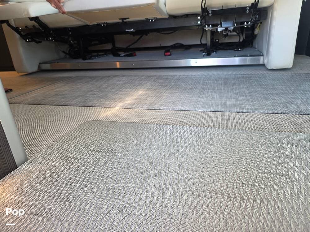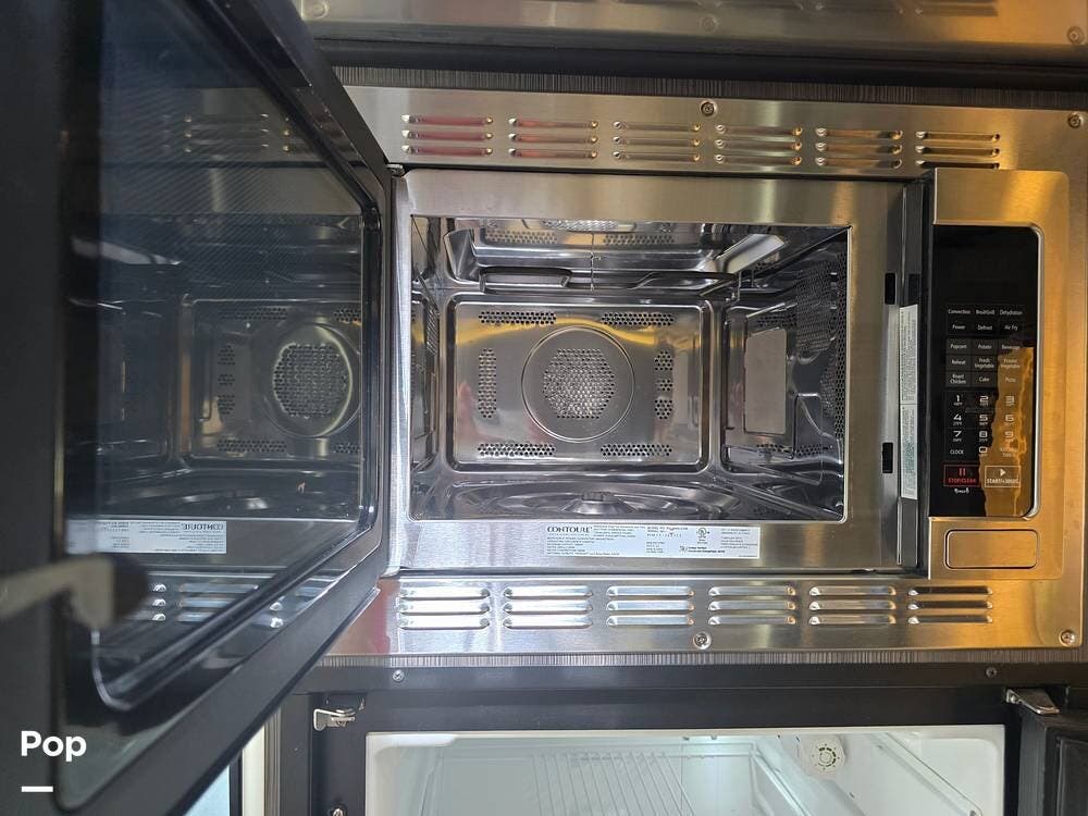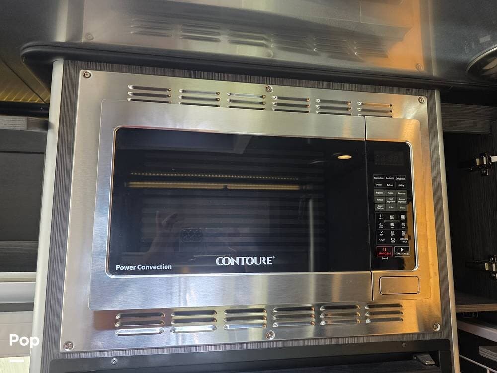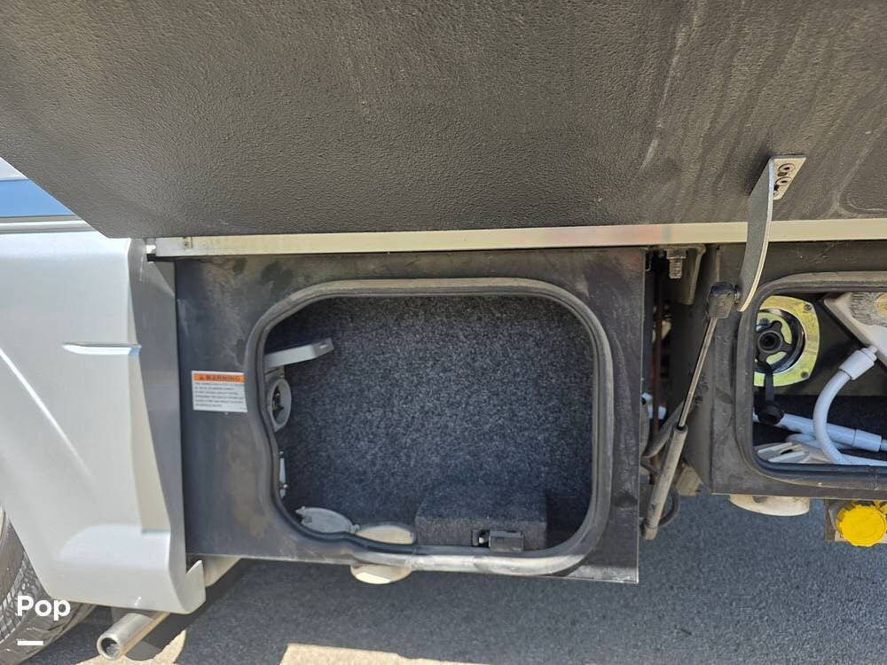 Entertainment is always available thanks to the retractable Samsung Smart TV, Bluetooth audio system, and satellite-ready setup. Outside, you'll find a powered awning with integrated LED lighting, power stabilizer jacks for quick setup, and a backup camera for safer parking.
