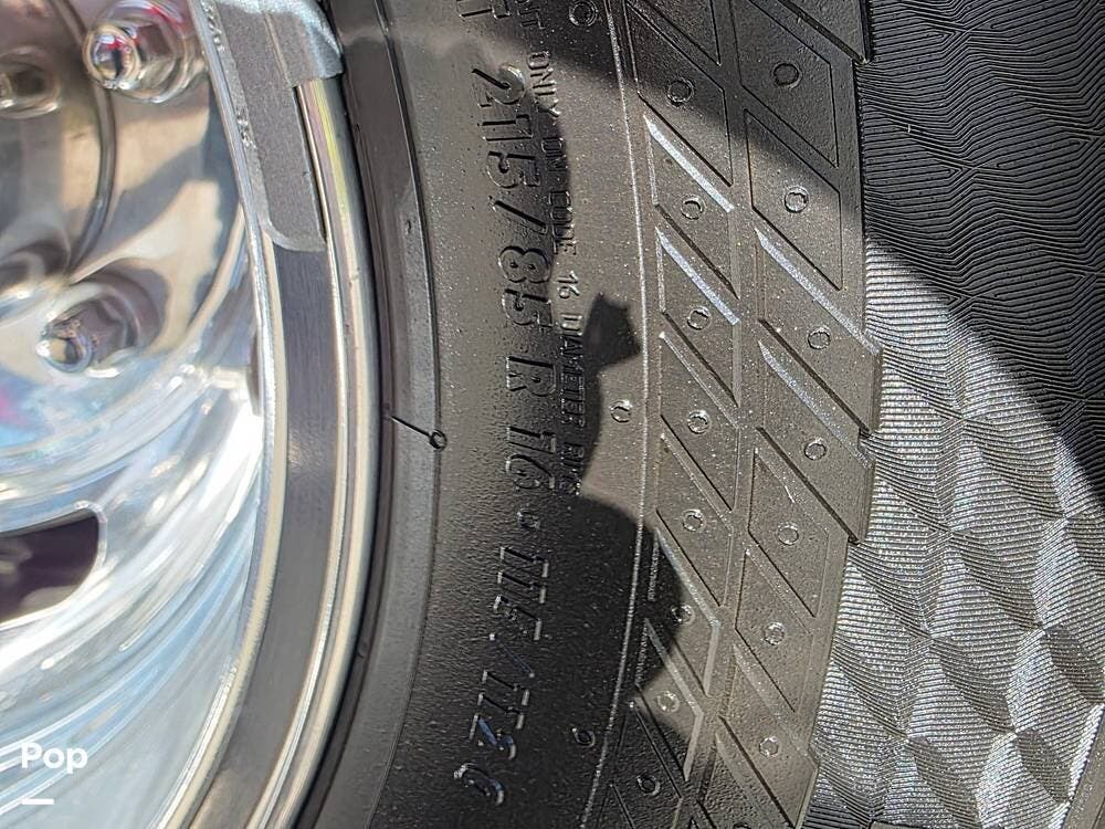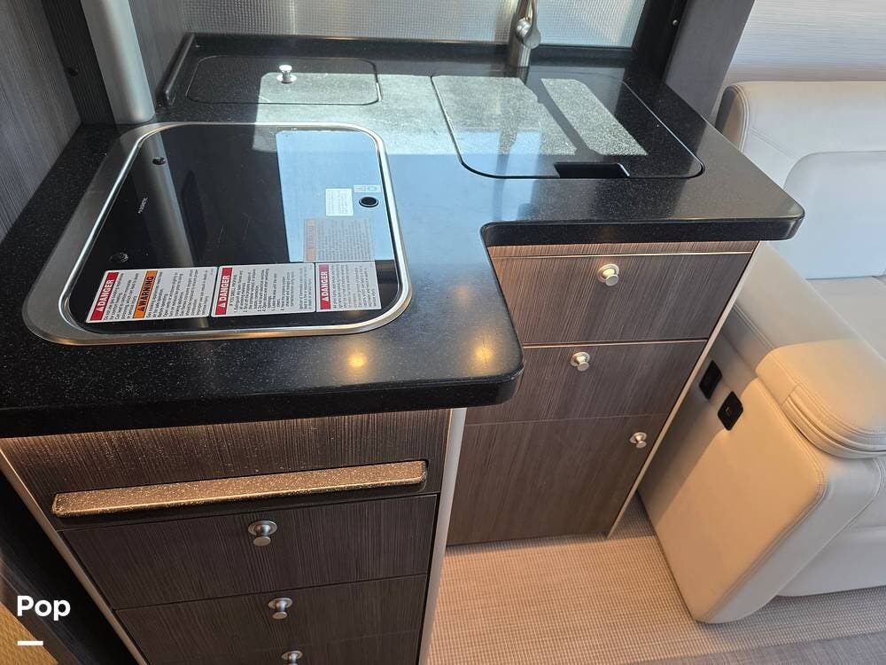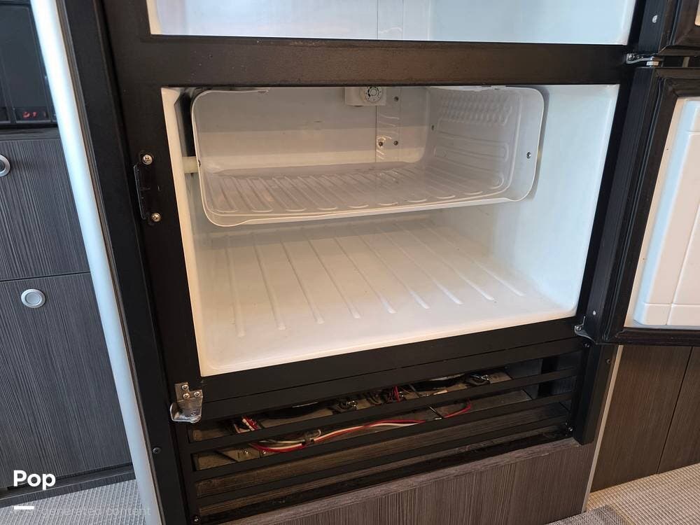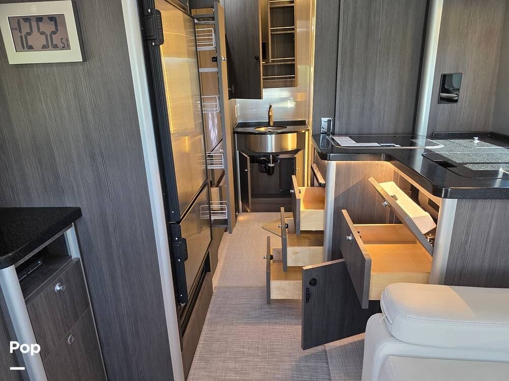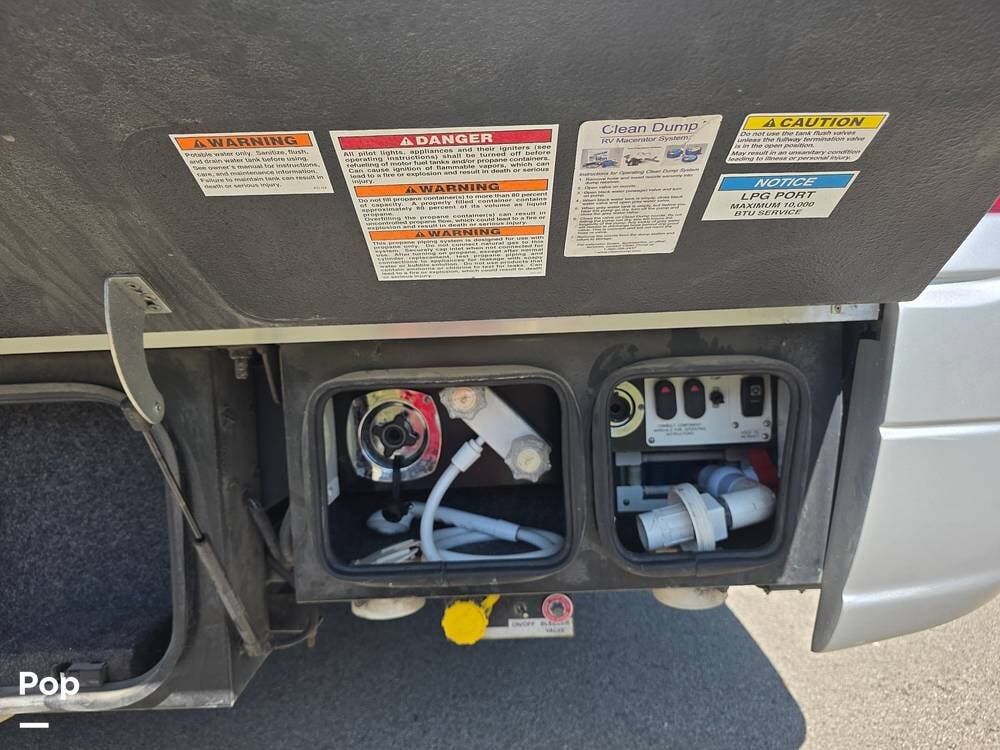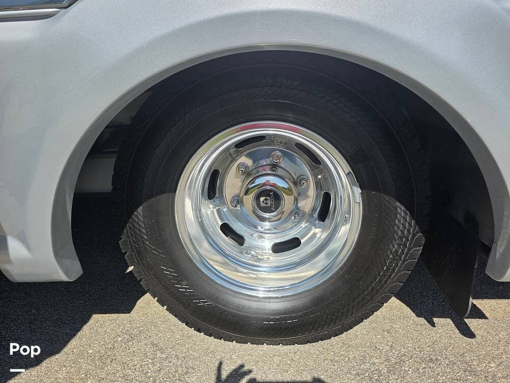 Entertainment is always available thanks to the retractable Samsung Smart TV, Bluetooth audio system, and satellite-ready setup. Outside, you'll find a powered awning with integrated LED lighting, power stabilizer jacks for quick setup, and a backup camera for safer parking.