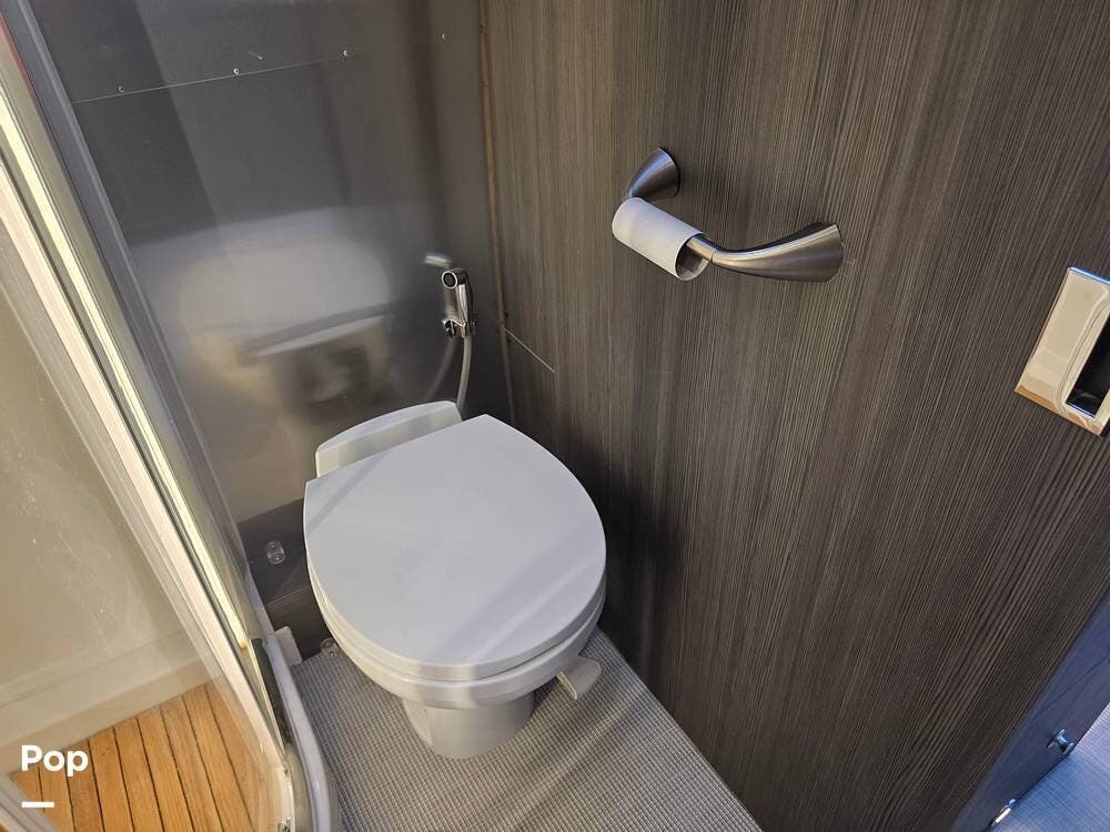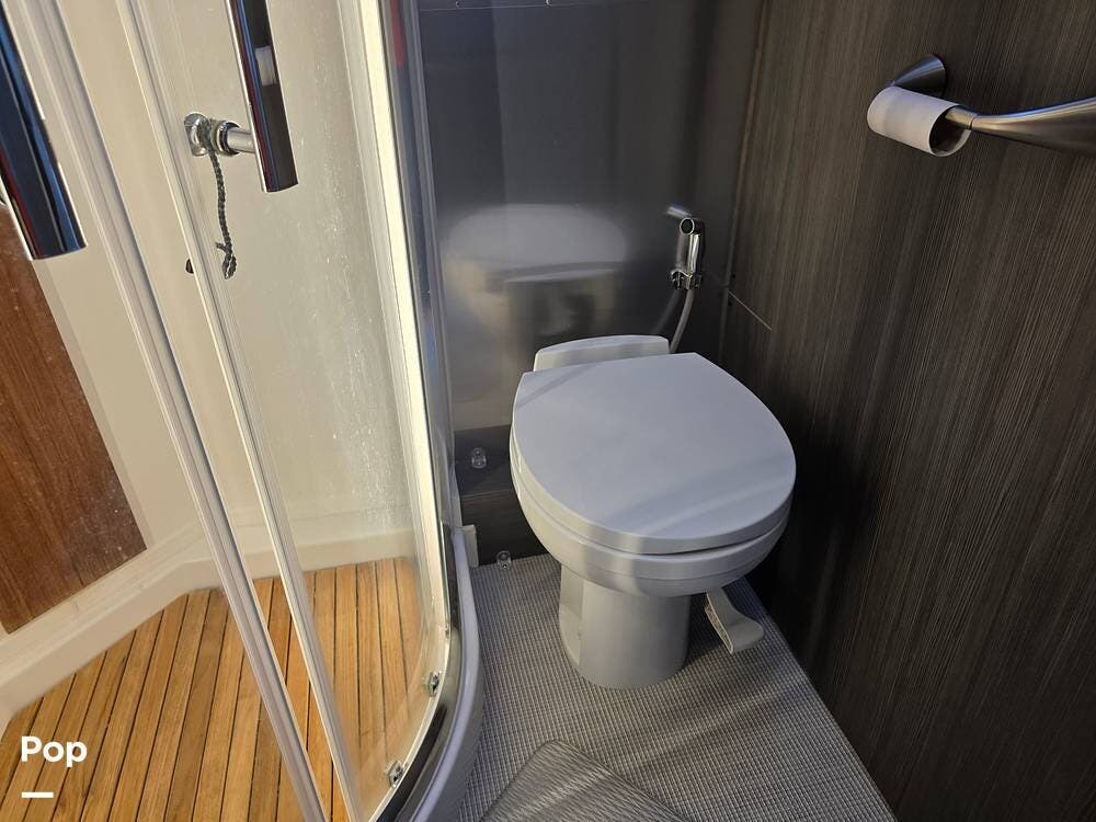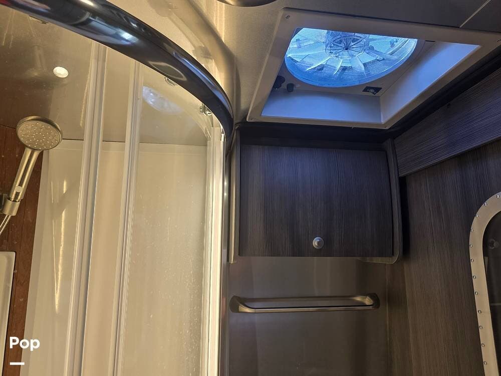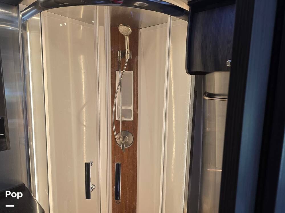 The kitchen offers everything you need to cook on the road, while the full-width rear bathroom provides a spa-like experience. Enjoy a spacious glass-door shower, a real vanity with mirror and storage, and high-end fixtures.