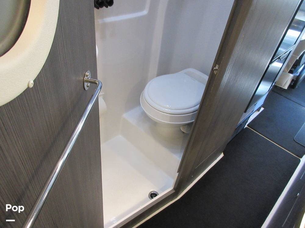 This Interstate is small outside and BIG inside! At 24 feet, it's easy to drive in city traffic. But despite its compact frame, this RV can carry seven passengers. The powered bench and side seats in the back convert into a queen bed perfect for two. And surprisingly, the bathroom is quite big for a Class B RV. You will also find plenty of storage in the overhead compartments along each wall, the kitchen cabinets, and the trunk area.