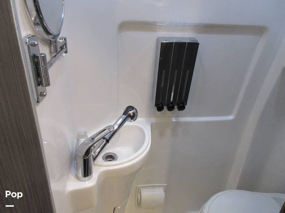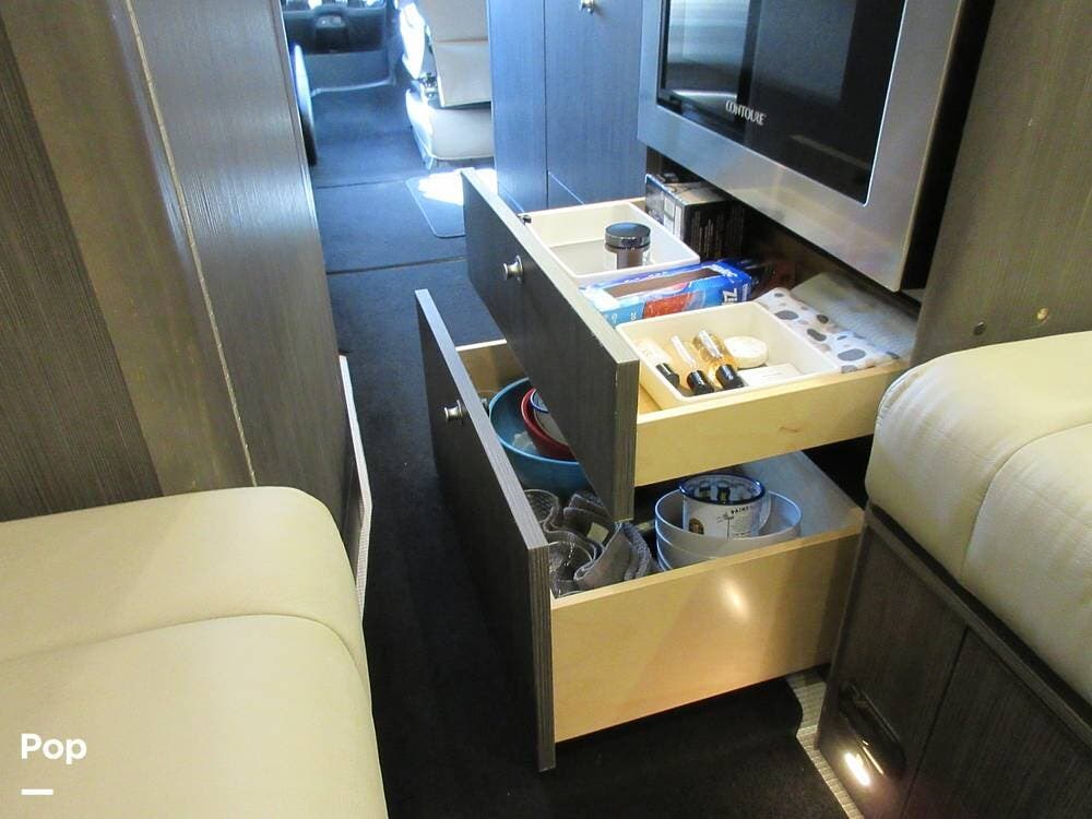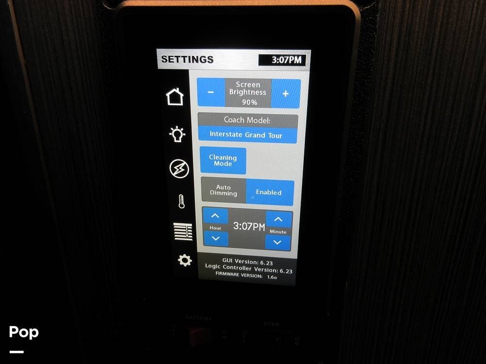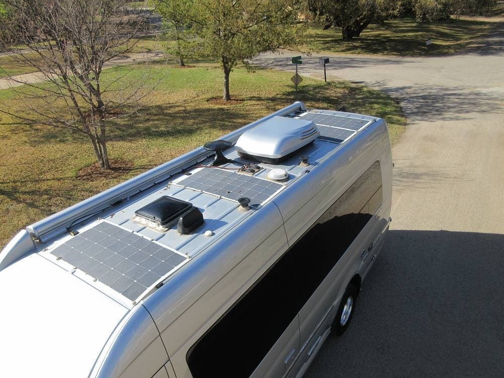 This Interstate is at home in an RV Park running on a 30 amp AC connection. Setting up is easy with an automatic leveling system (with remote). You can also wander off the grid and get support from an Onan 2.5kW propane generator, a 27-gallon freshwater tank, a 21-gallon gray tank, a 13-gallon black tank, and a 41-lb propane tank. Plus, this RV has four solar panels on the roof and two house batteries to keep the juice flowing.