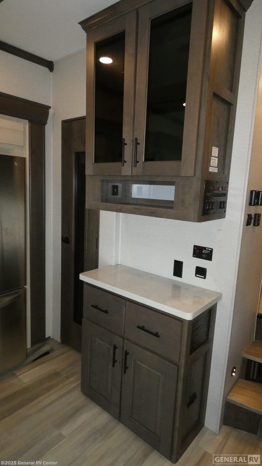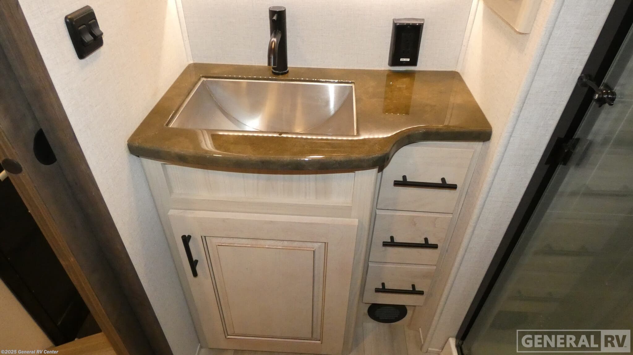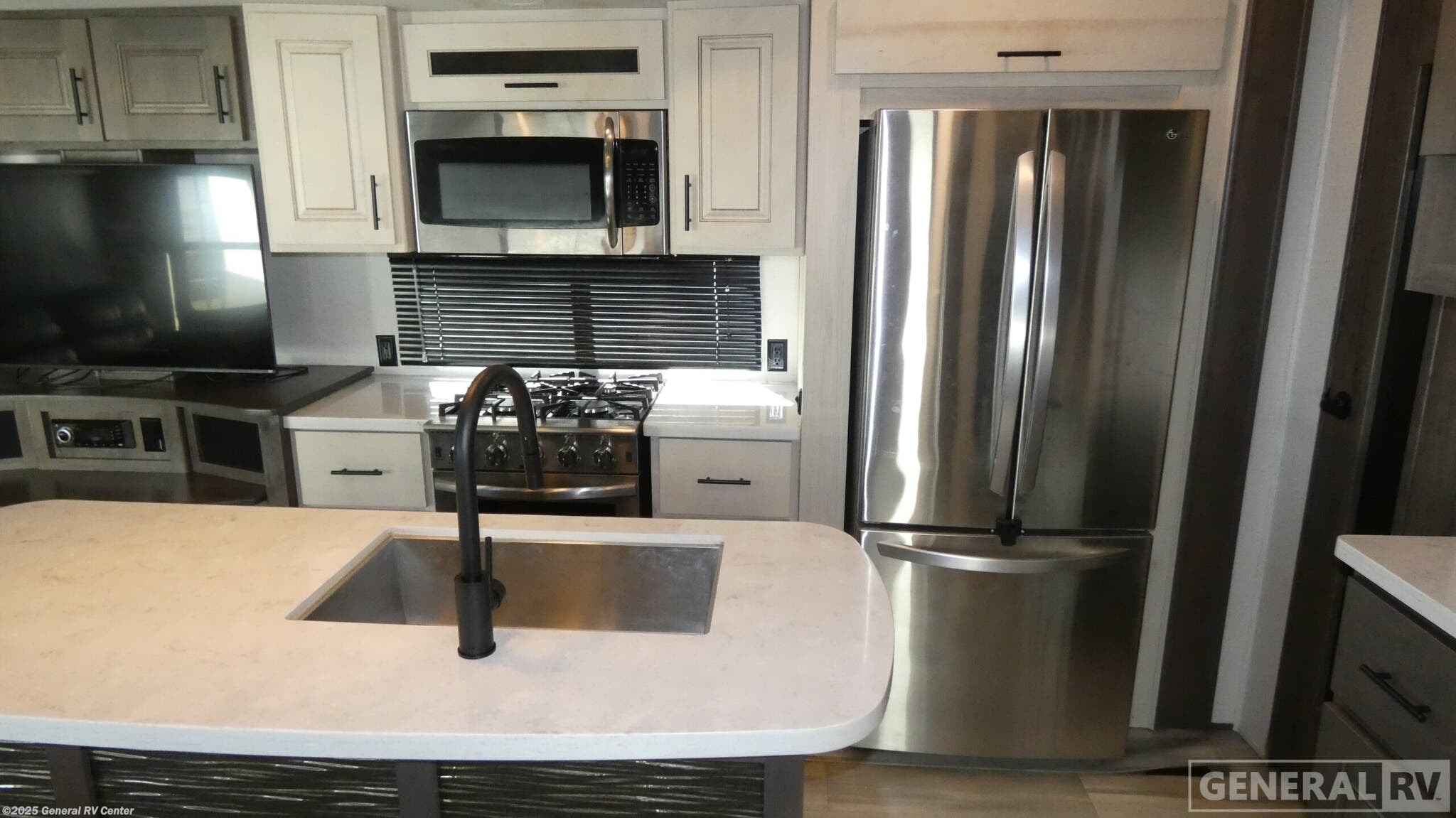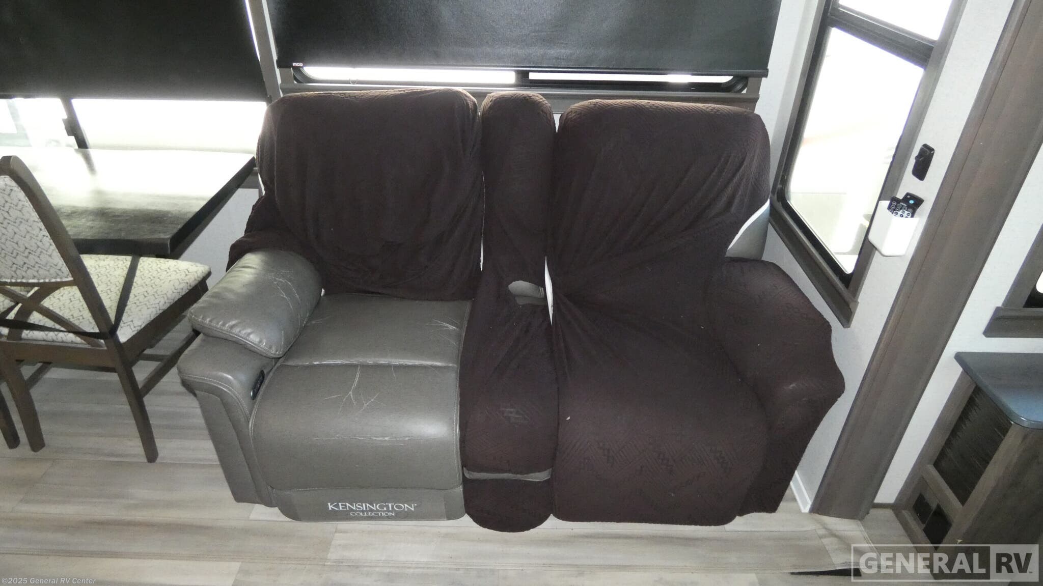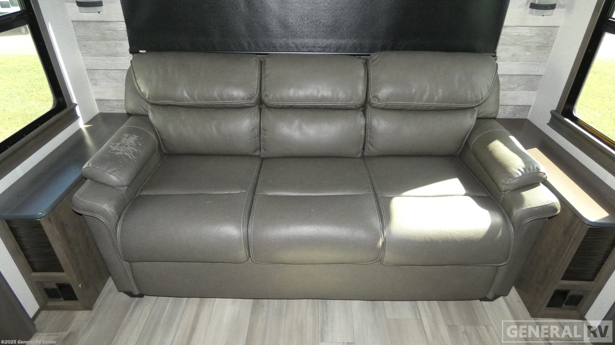 Experience the perfect blend of luxury and functionality with the 2021 Alliance RV Paradigm 310RL. This fifth wheel is designed for those who crave adventure without sacrificing comfort. With a spacious layout featuring a center kitchen and rear living area, you'll enjoy a seamless flow throughout the RV. The kitchen boasts a full-size refrigerator and a four-burner cooktop, making meal preparation a breeze. Relax in the inviting rear living space with a dual recliner love seat and a cozy fireplace, perfect for unwinding after a day of exploration. The front bedroom offers a serene retreat with a king bed option, ample storage, and washer/dryer prep for added convenience. The center bath features a spacious 48"x30" shower with a sleek plastic and glass design. With three slides, this RV provides generous living space, while the powered retractable awnings offer shade and comfort outdoors. Whether you're parked by a scenic view or on a cross-country journey, the Paradigm 310RL is your luxurious home away from home. For more details, visit your nearest General RV Dealership.