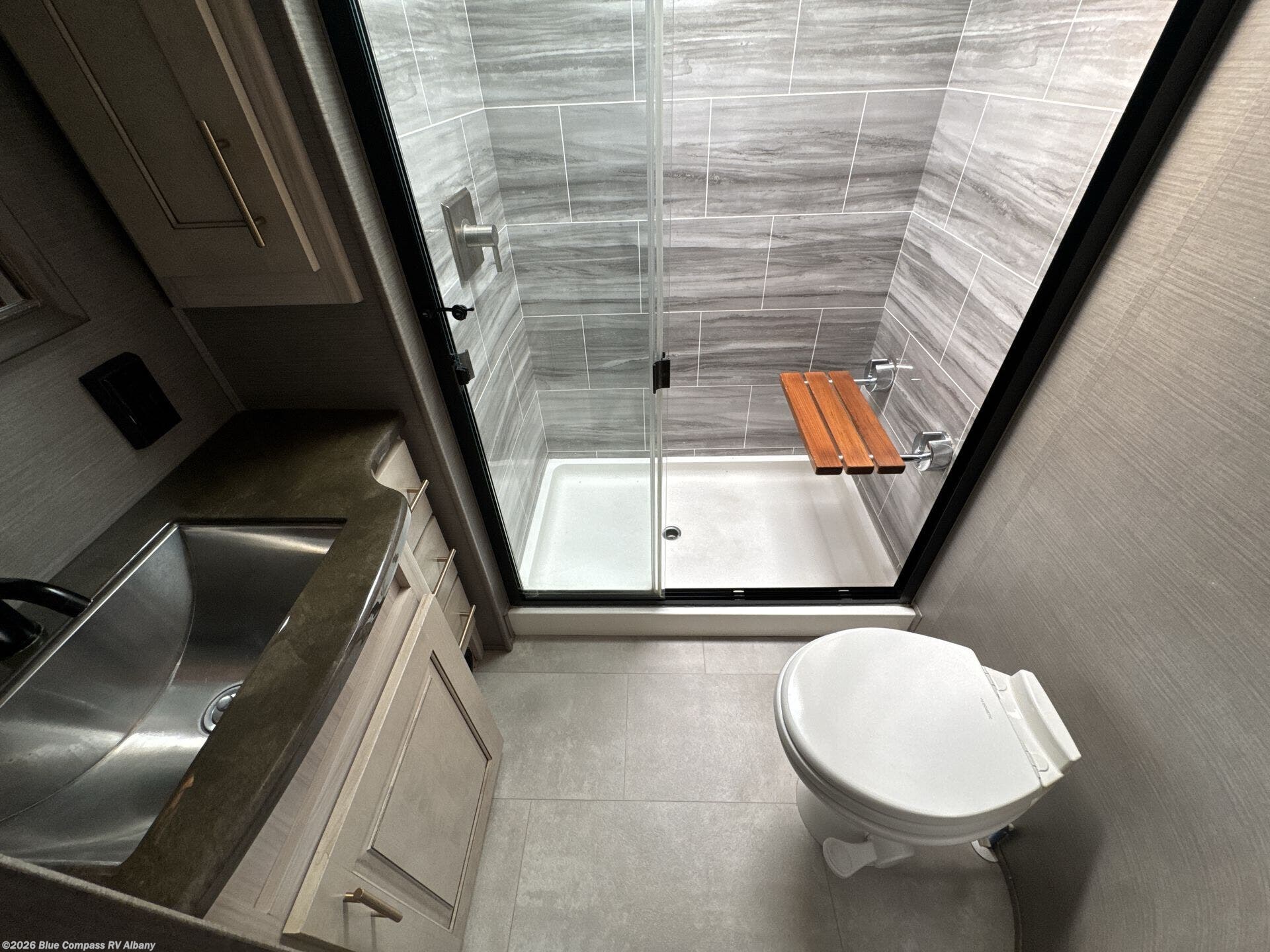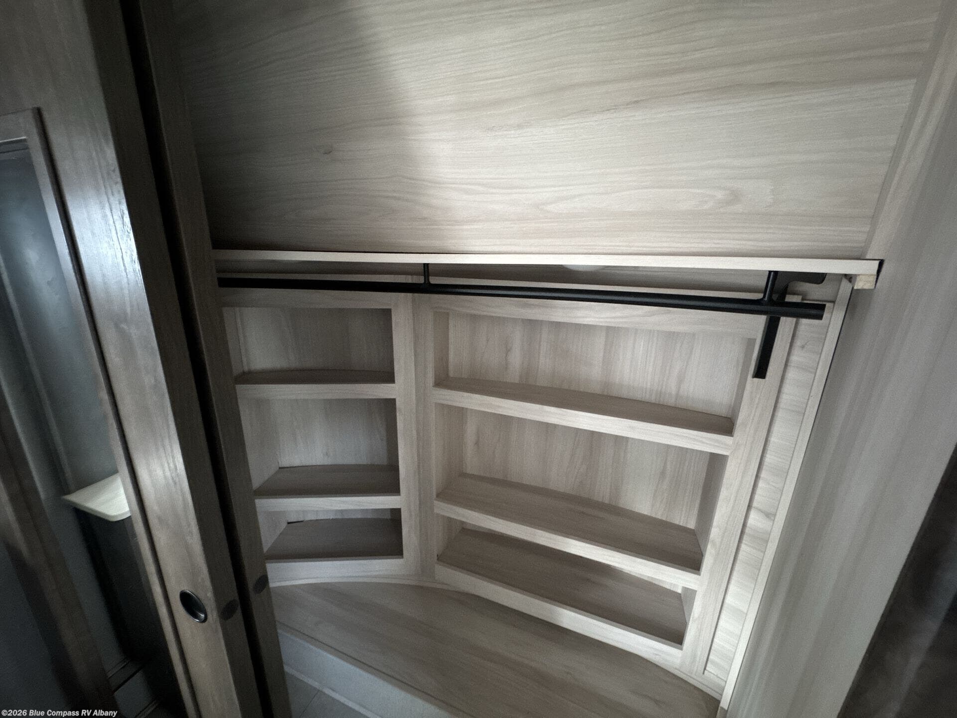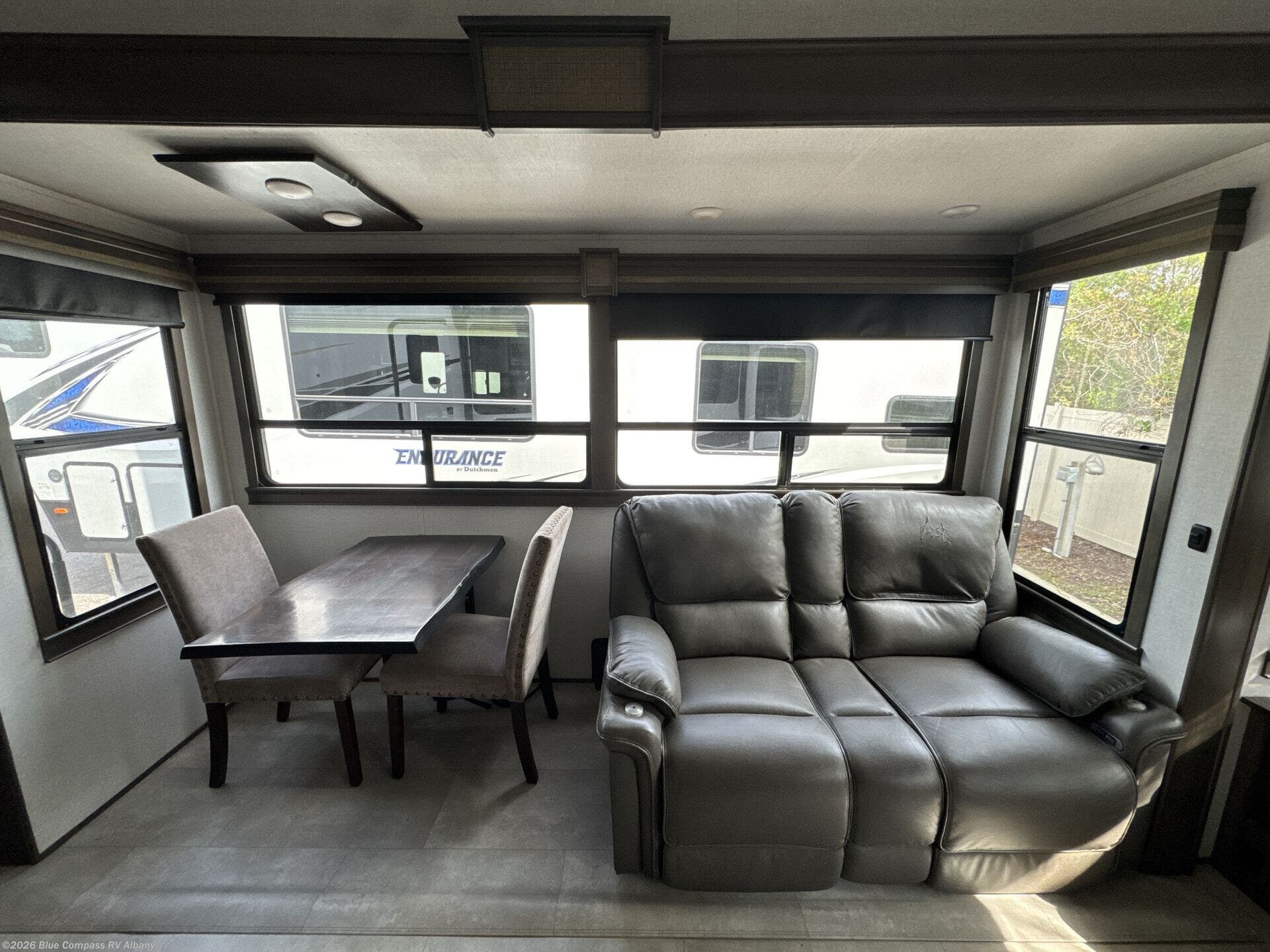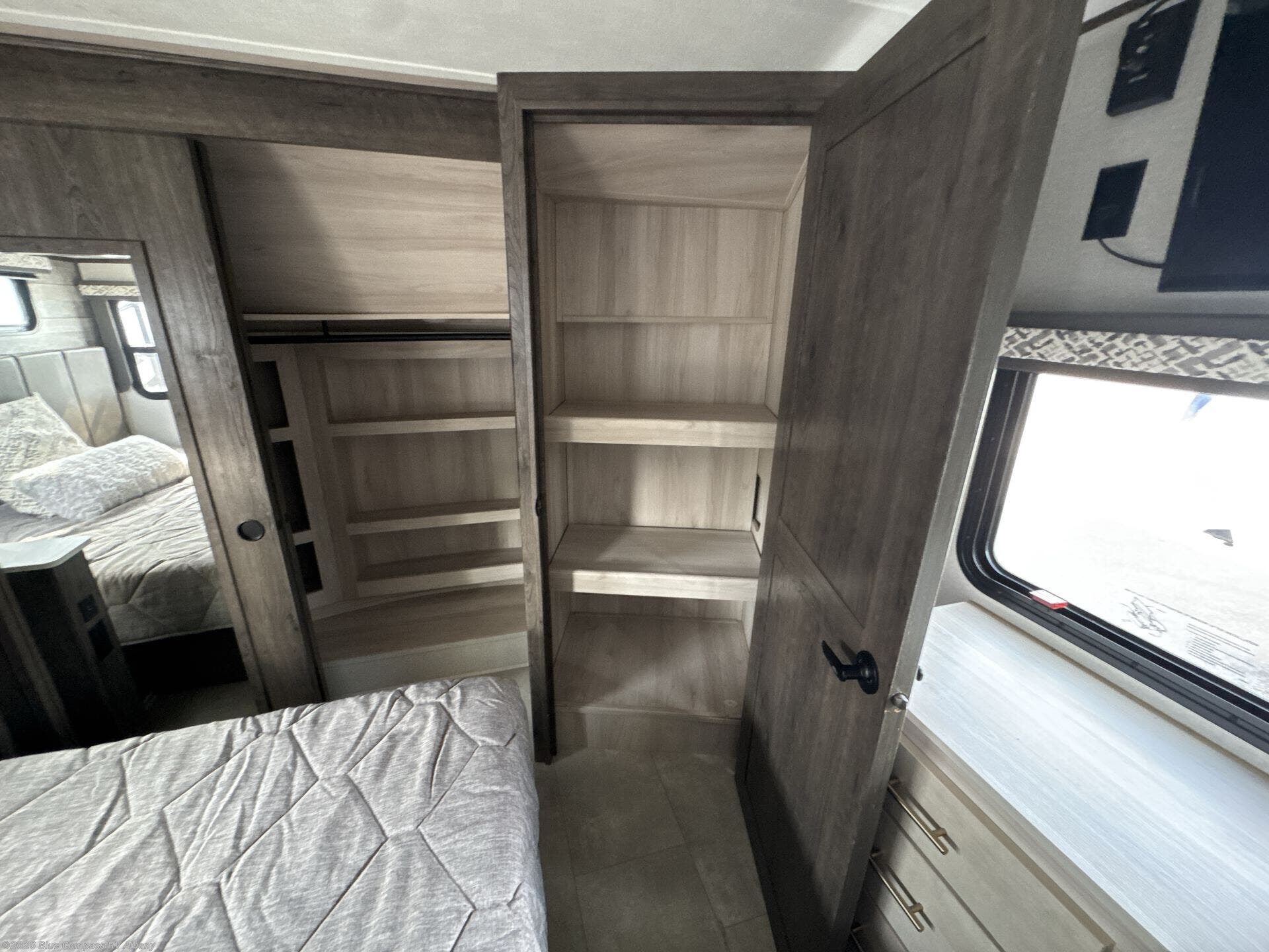 You will be amazed by this Paradigm fifth wheel for all of the amenities that make full-time living such an easy task! The kitchen has been prepped for a dishwasher, and the opposing slides create lots of room for you to work around the island. The sleeper sofa has flip-up end tables on either side, and you will find additional seating on the dual recliner love seat and the floating dinette table with chairs. The master bedroom is phenomenal with its walk-in closet, flip-top dresser, seat with storage, Smart TV, and king bed slide. The dimmable LED lighting is going to let you customize the brightness level all throughout your unit, and the under-step shoe storage is another example of the great storage capabilities.