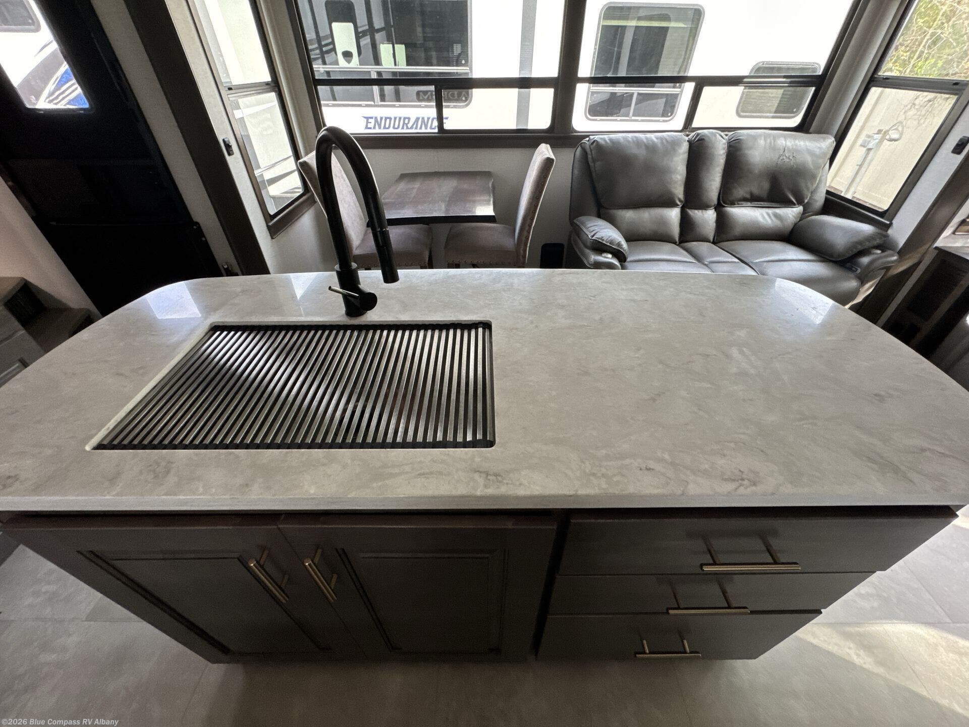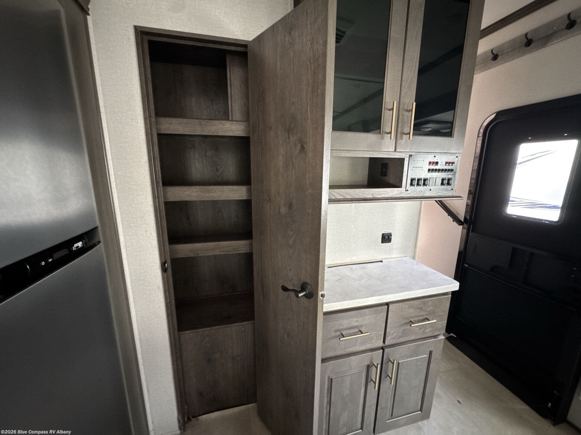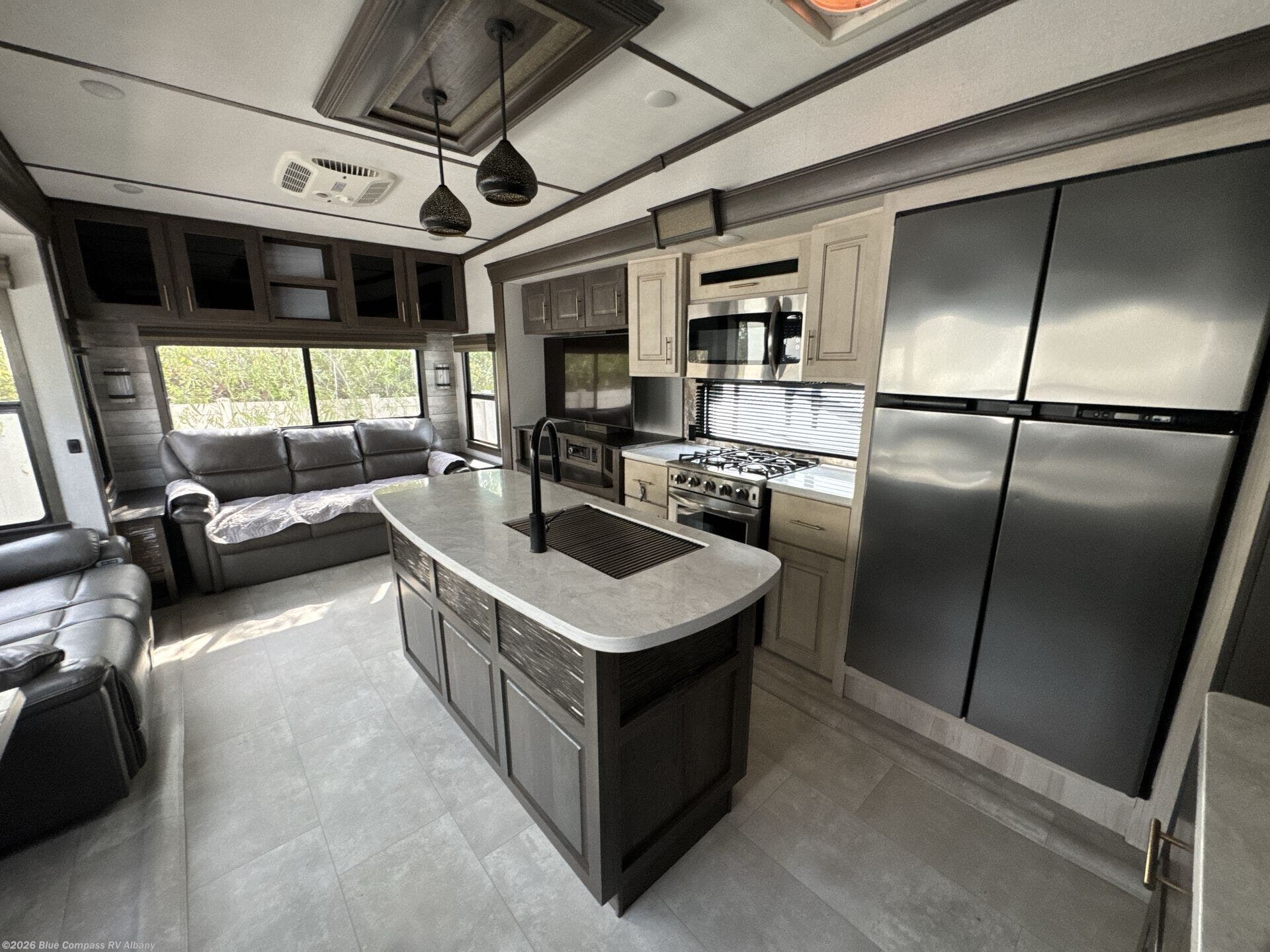 The Paradigm fifth wheel from Alliance RV is absolutely a dream to own because it combines high quality and luxury with features that you have specifically requested over the years! Some of the exterior customer-driven features are the Benchmark chassis, the G-range tires rated at 4,400 pounds, and the MorRyde CRE3000 suspension, and the Paradigm offers some of the industry's largest tank sizes at 98 gallons for fresh water and 106 gallons for gray water. The PVC roof covering will do an excellent job at protecting your RV from water intrusion, and it has increased solar reflectivity. You won't find any carpet in the Paradigm, and another great feature that has been reconstructed to meet the customer's needs is the flush-floor slide. The soft-close doors and drawers with magnetic catch are a high-end residential feature that isn't typically found on other RVs, and the excellent hidden storage capabilities of the Paradigm will surprise you when you find them.