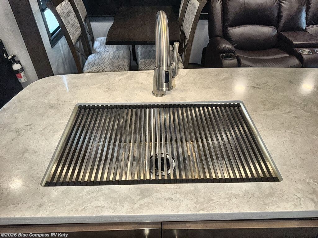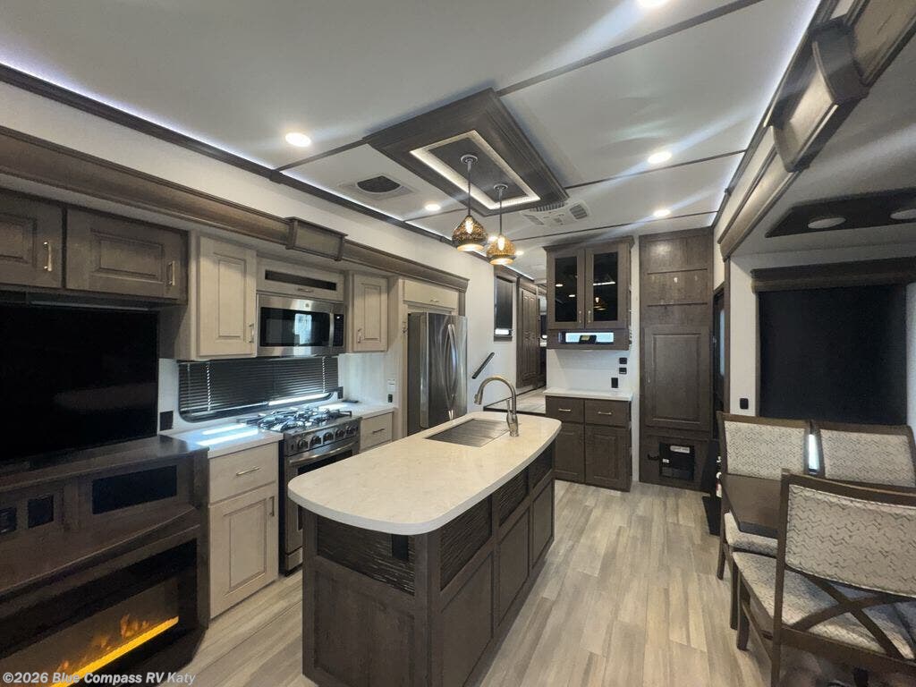The Paradigm fifth wheel from Alliance RV is absolutely a dream to own because it combines high quality and luxury with features that you have specifically requested over the years! Some of the exterior customer-driven features are the Benchmark chassis, the G-range tires rated at 4,400 pounds, and the MorRyde CRE3000 suspension, and the Paradigm offers some of the industry's largest tank sizes at 98 gallons for fresh water and 106 gallons for gray water. The PVC roof covering will do an excellent job at protecting your RV from water intrusion, and it has increased solar reflectivity. You won't find any carpet in the Paradigm, and another great feature that has been reconstructed to meet the customer's needs is the flush-floor slide. The soft-close doors and drawers with magnetic catch are a high-end residential feature that isn't typically found on other RVs, and the excellent hidden storage capabilities of the Paradigm will surprise you when you find them.