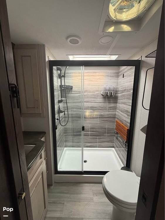 Up front, the private master suite provides a peaceful retreat with a queen-size bed, large wardrobe, and washer/dryer prep, while the elegant bathroom features a spacious shower and upscale finishes throughout. Designed with high-capacity tanks and all-season insulation, the 2021 Alliance Paradigm 365RD is ready for year-round comfort and adventure.