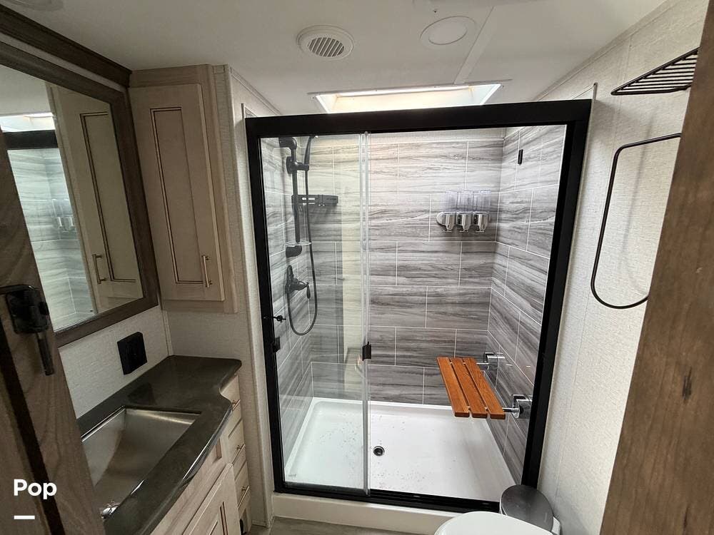 Up front, the private master suite provides a peaceful retreat with a king-size bed, large wardrobe, and washer/dryer prep, while the elegant bathroom features a spacious shower and upscale finishes throughout. Designed with high-capacity tanks and all-season insulation, the 2021 Alliance Paradigm 365RD is ready for year-round comfort and adventure.