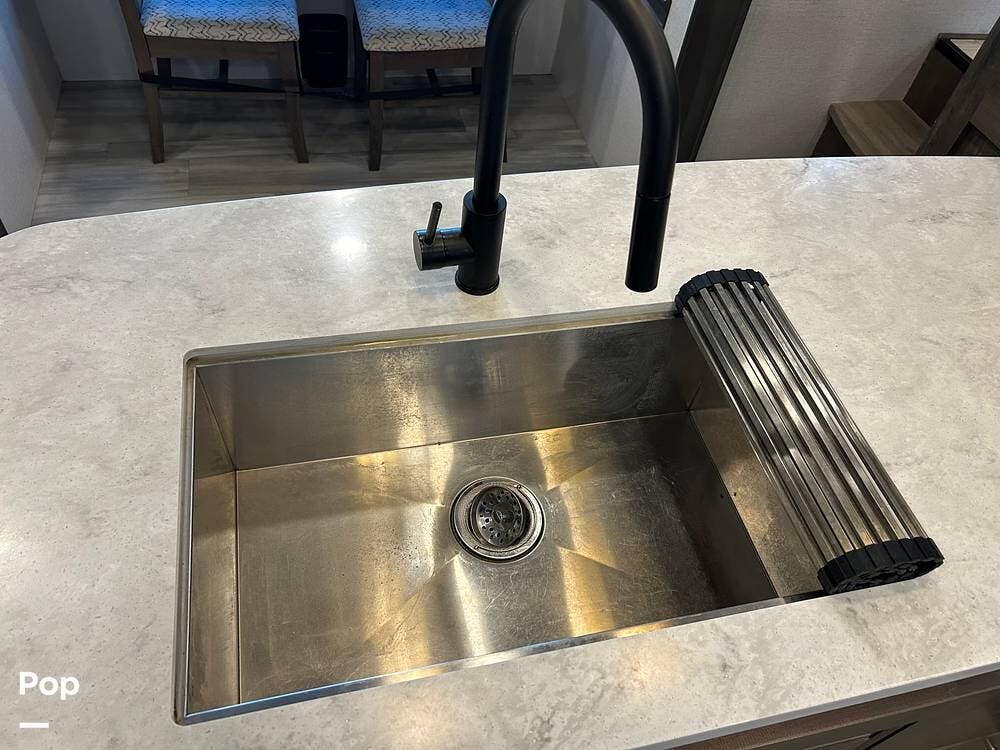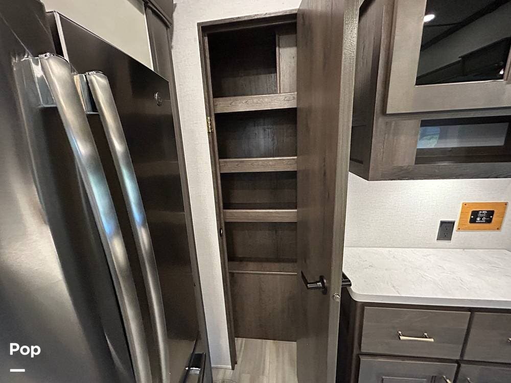The 365RD uses five slide-outs that greatly expand interior living space and give a roomy, "home-like" feel. The interior is equipped with LED accent lighting (many dimmable), soft-close cabinets/drawers (residential-style), USB charging ports, and even marine-grade exterior speakers for outdoor audio.