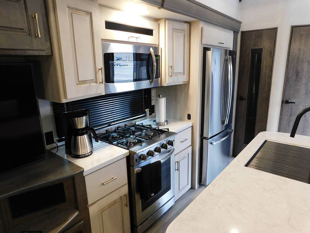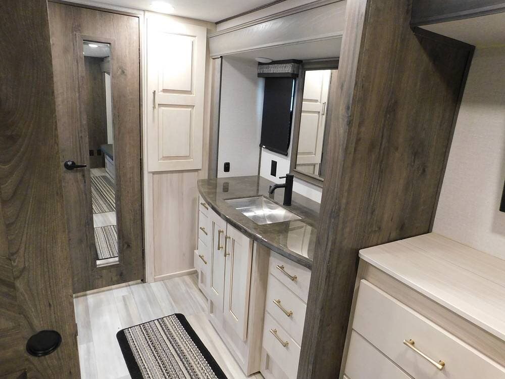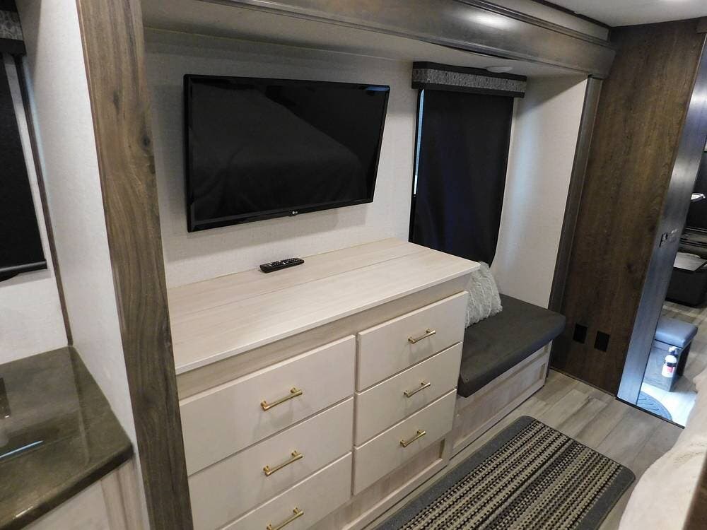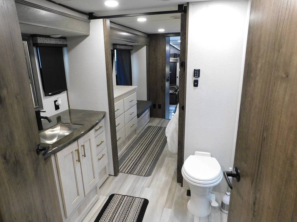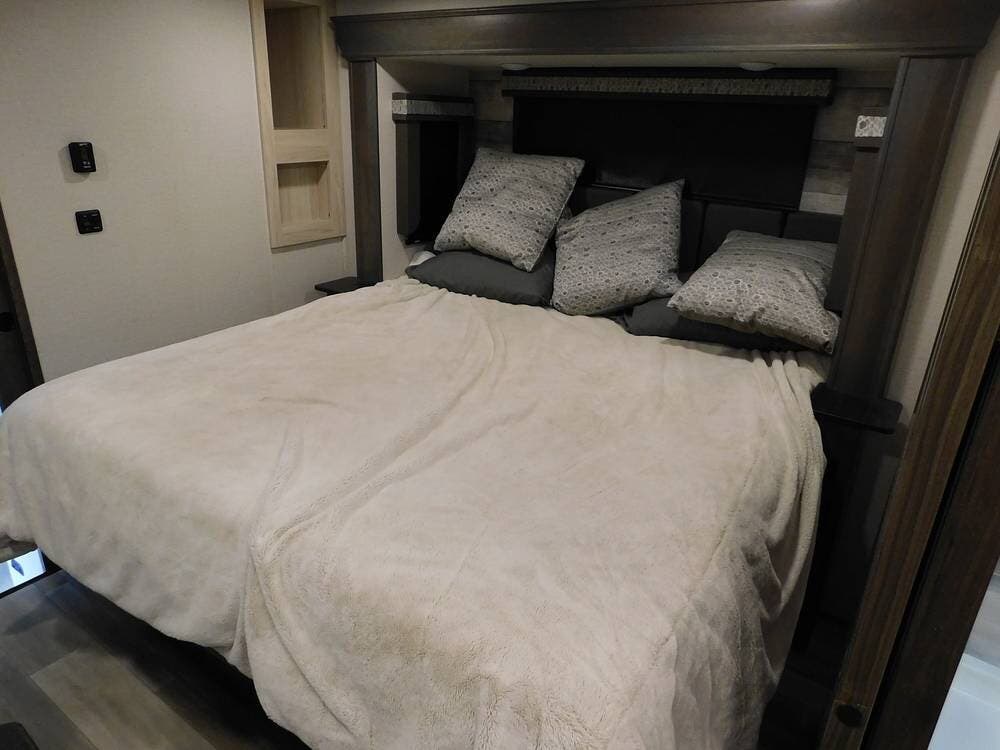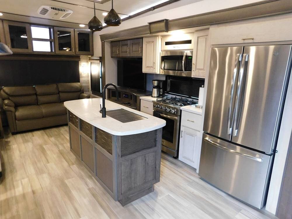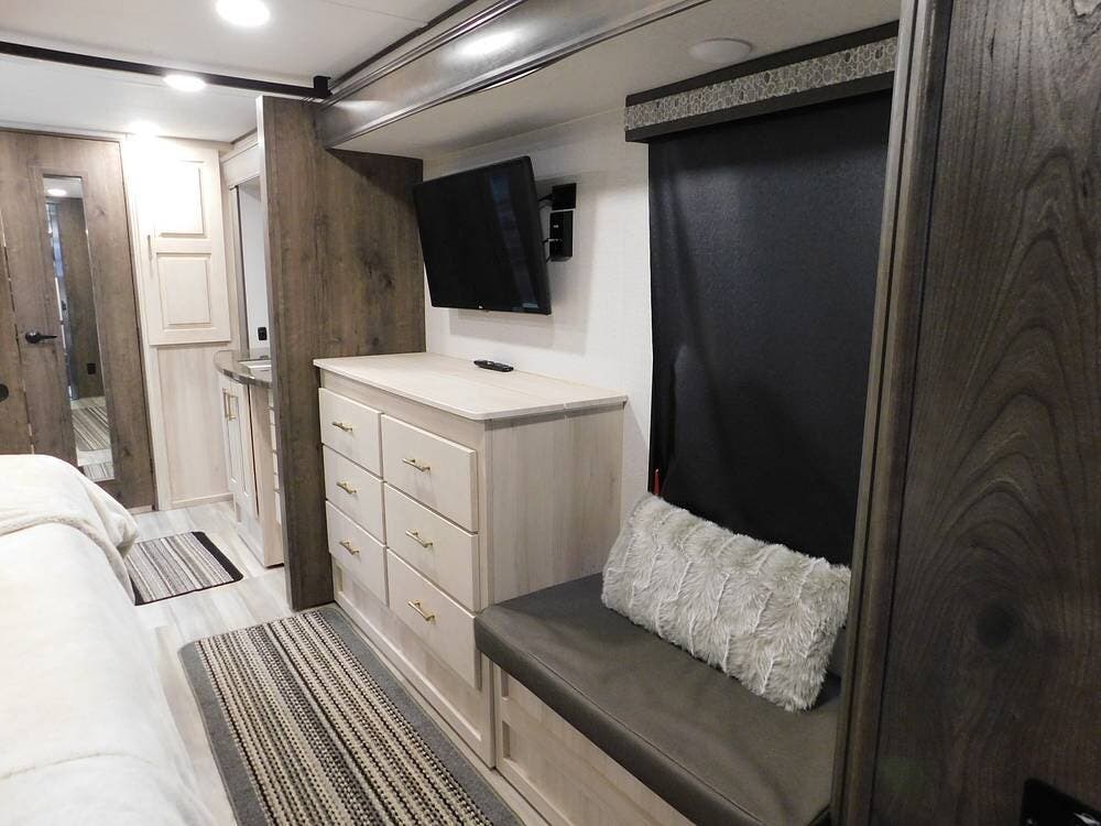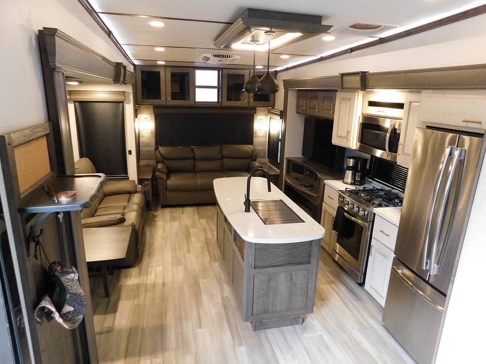 With a tremendous amount of floor space and a comfortable layout, if you are considering full-time living, this fifth wheel would be a great option.