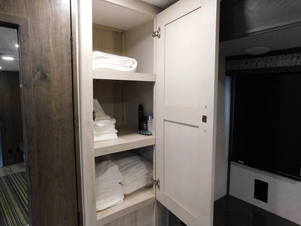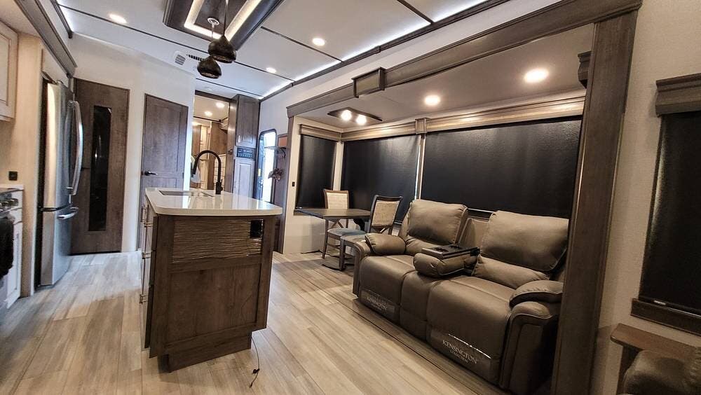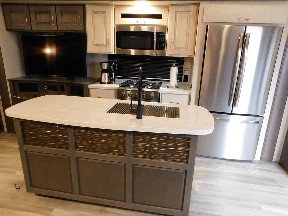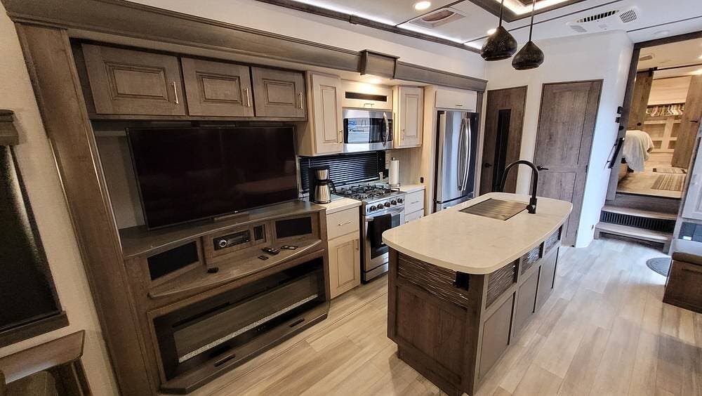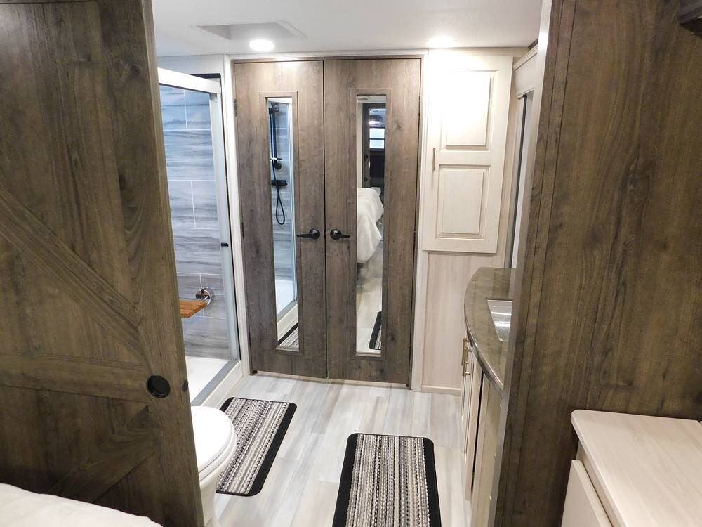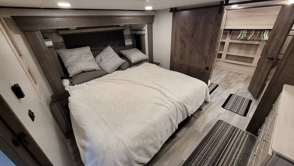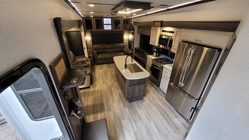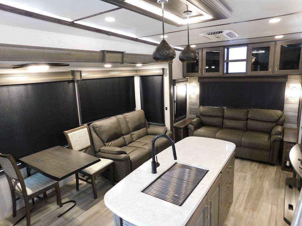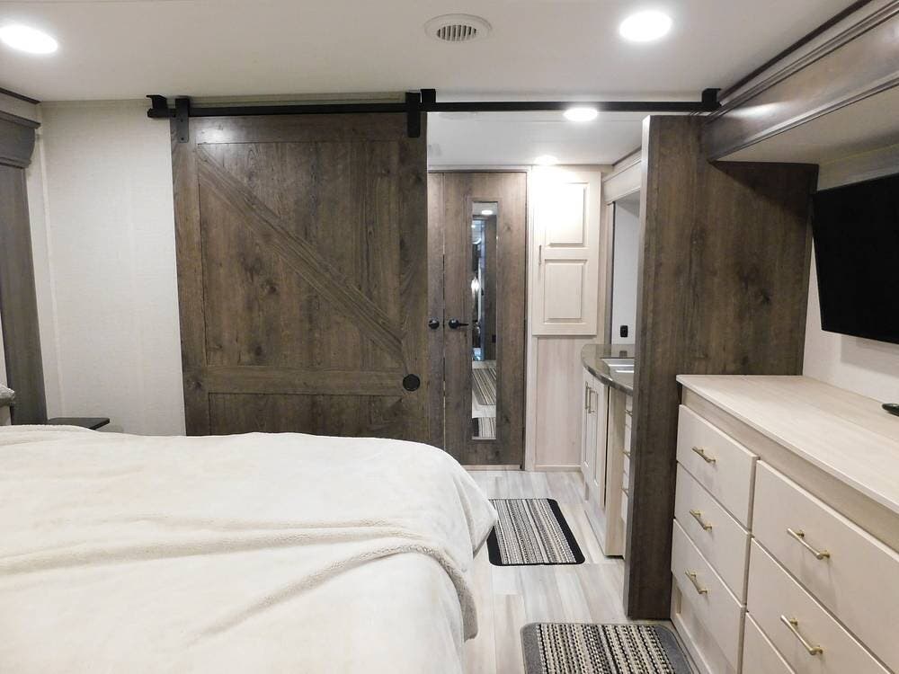 With a tremendous amount of floor space and a comfortable layout, if you are considering full-time living, this fifth wheel would be a great option.