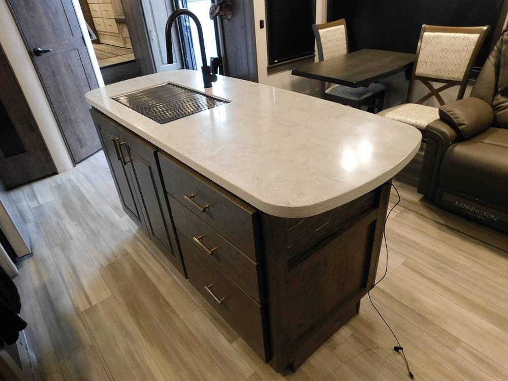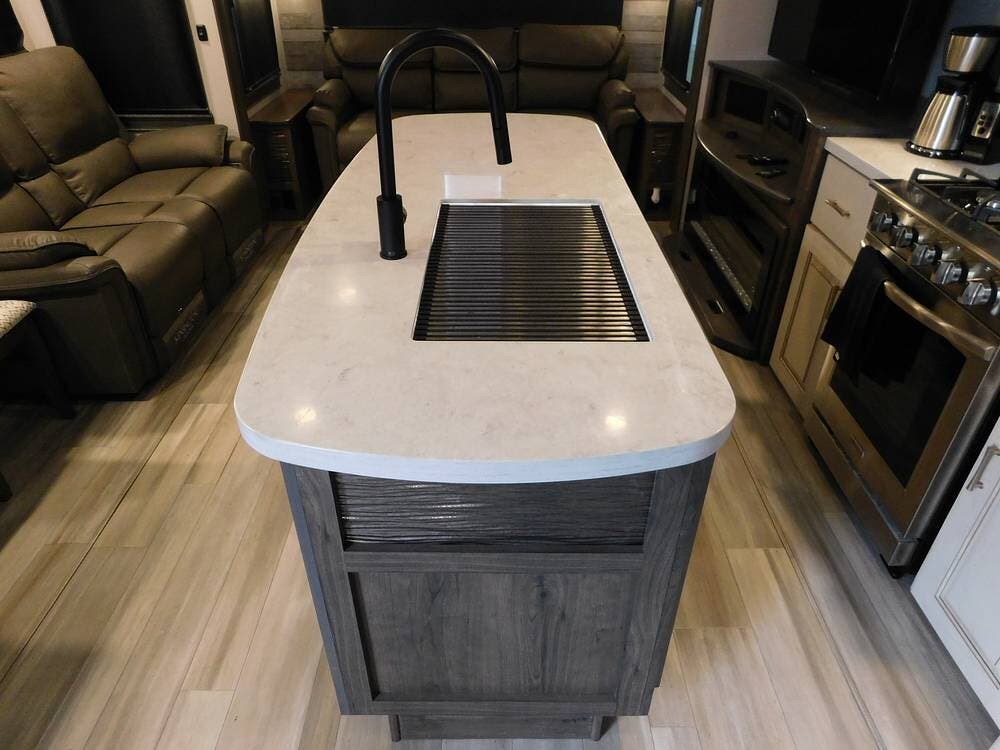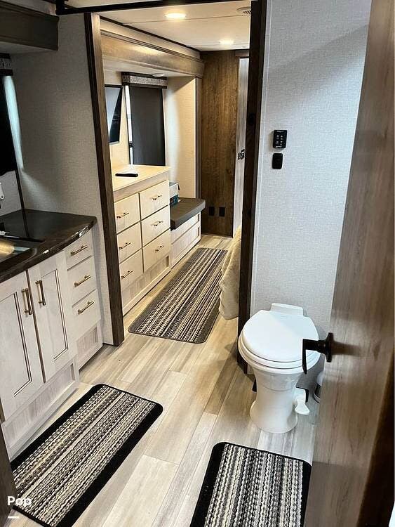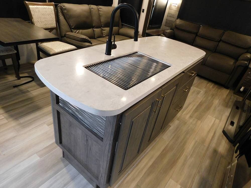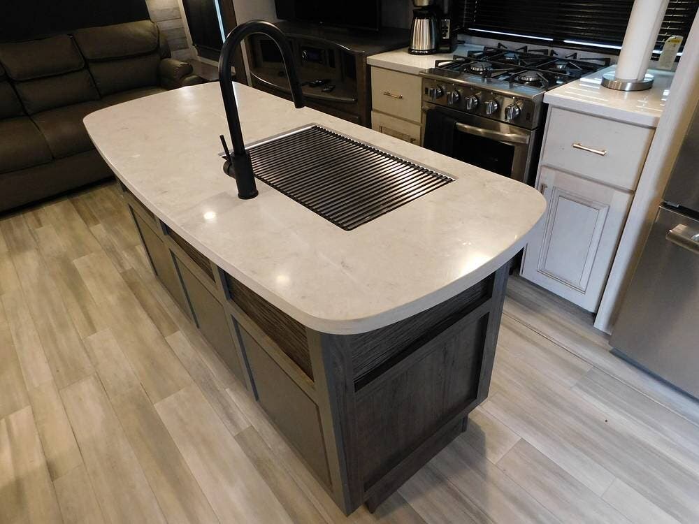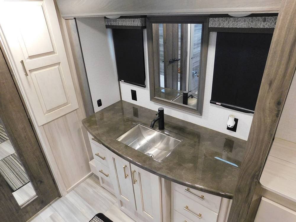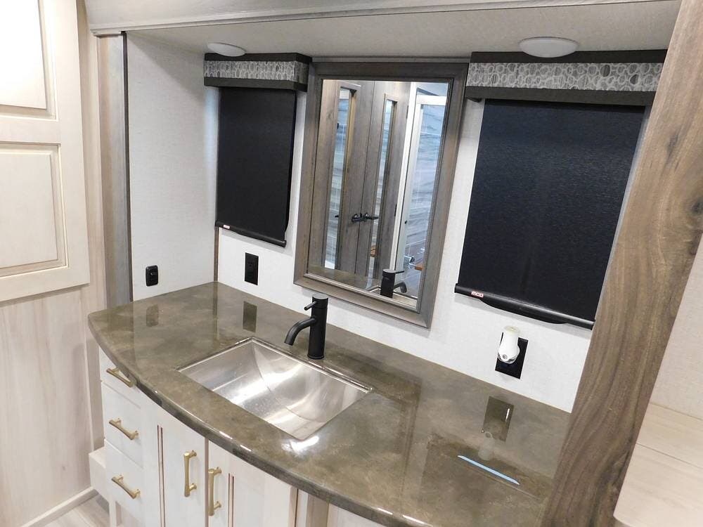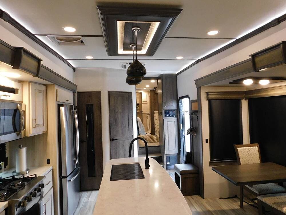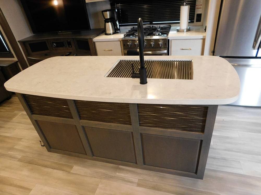With a tremendous amount of floor space and a comfortable layout, if you are considering full-time living, this fifth wheel would be a great option.