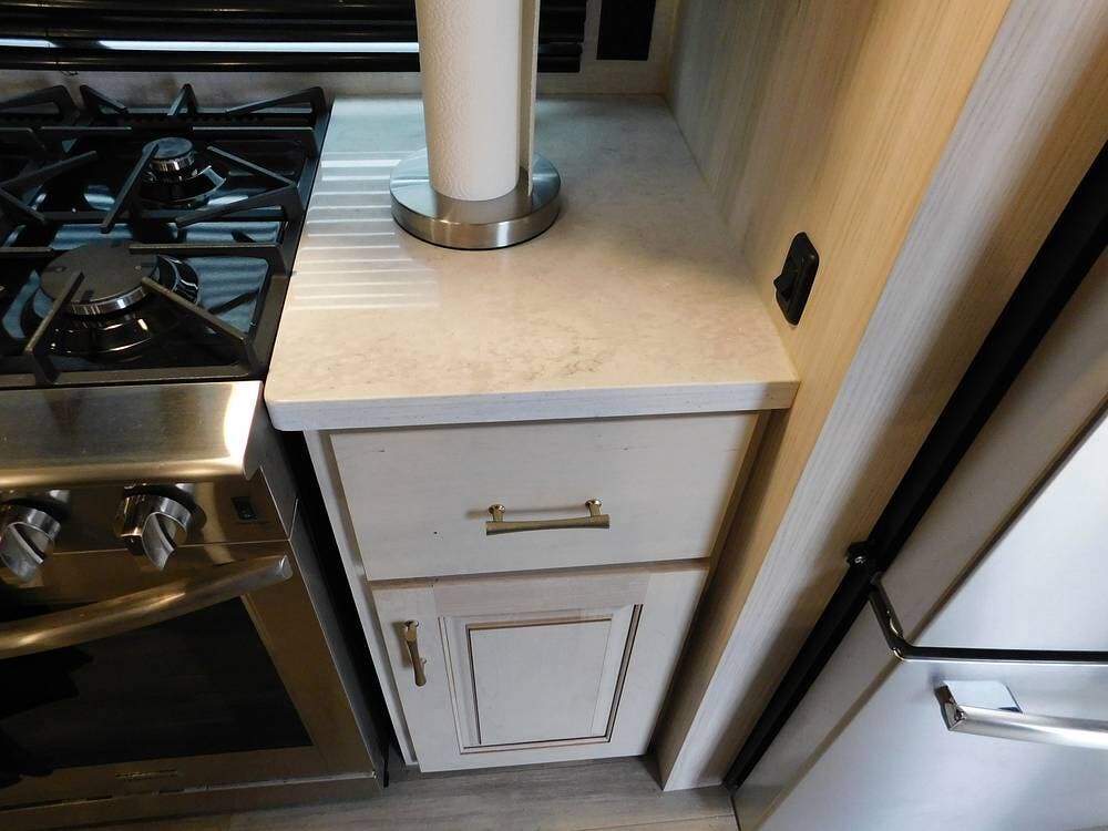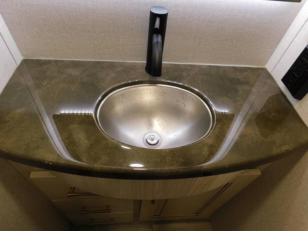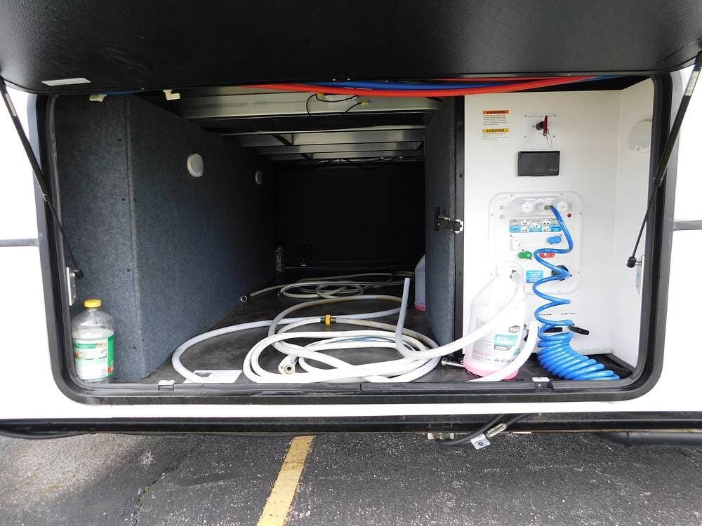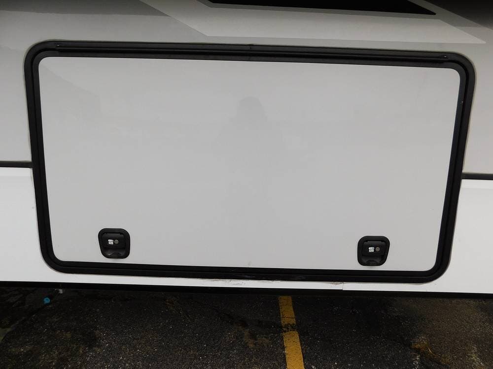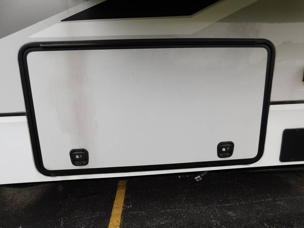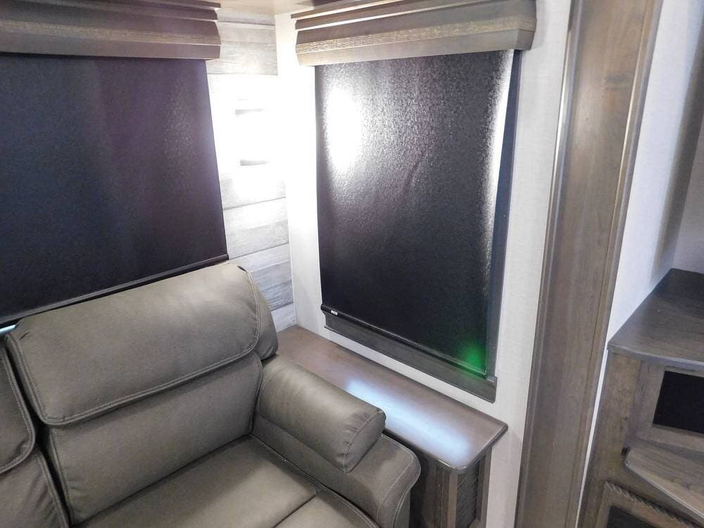 Outside, you have a large front pass-through storage for all your gear and there are also two power awnings for great shade.