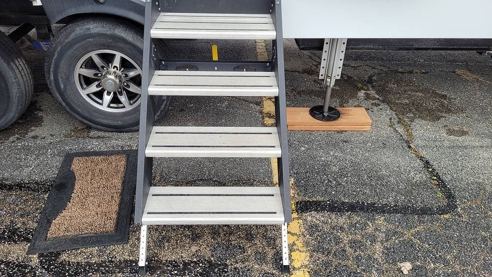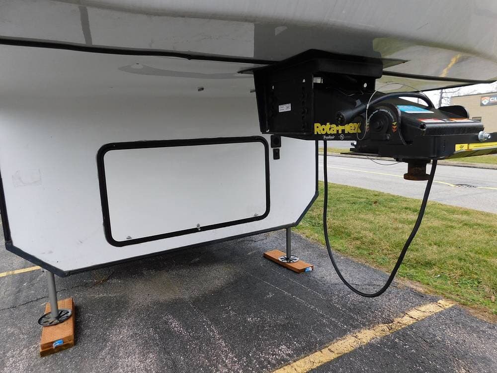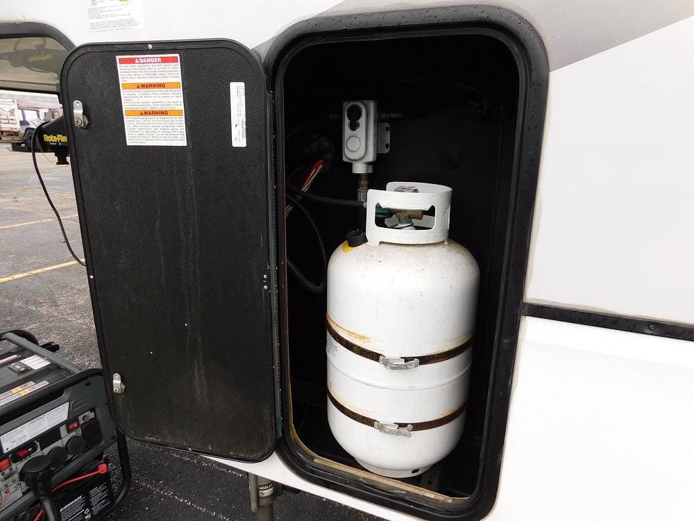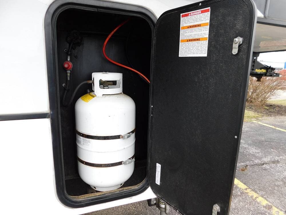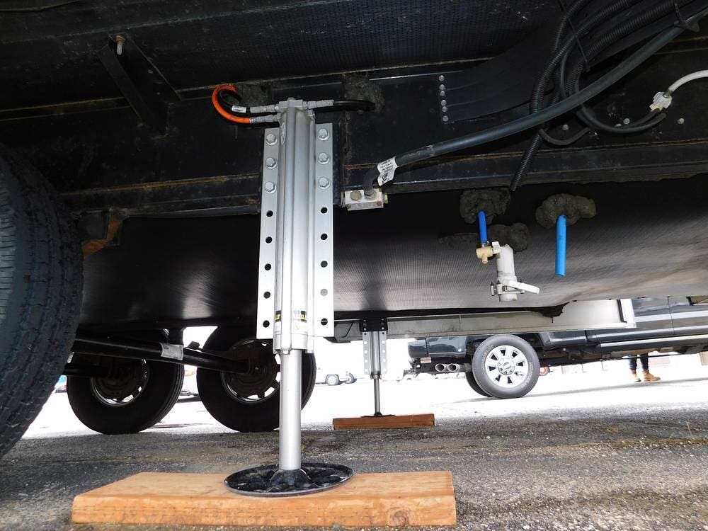 Auto leveling jacks are also included as well as a stationary tripod for more stability when parked and the seller will be including the extra propane tanks seen in the ad.