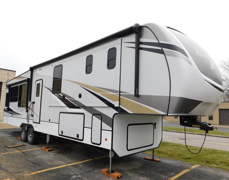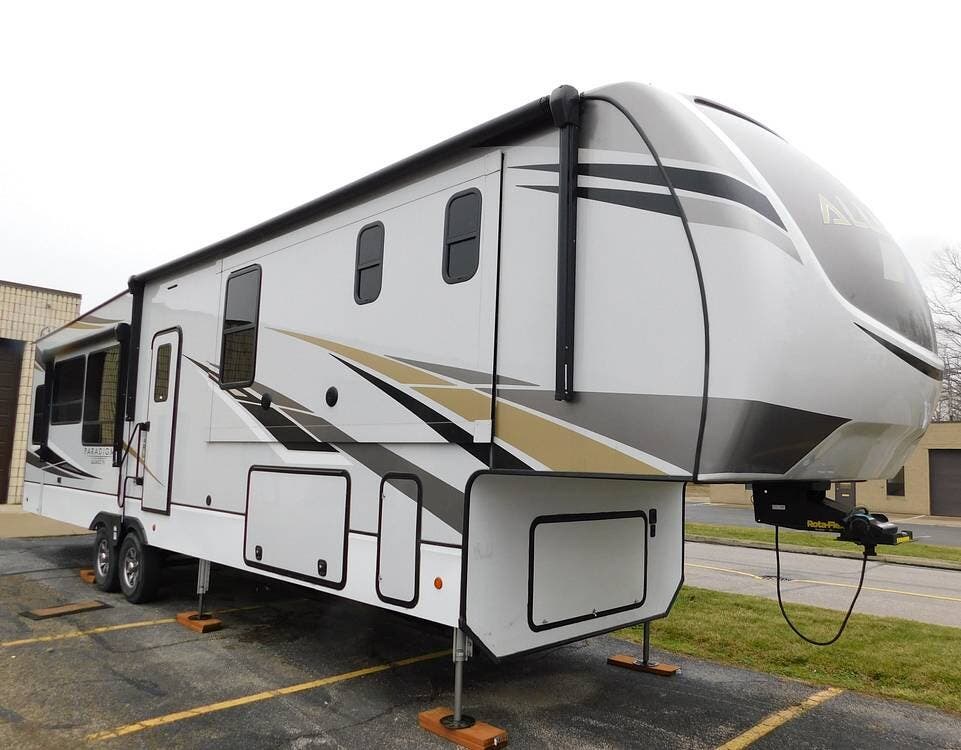 This 2021 Paradigm 370FB is a 40-foot fifth-wheel located in Eastlake Ohio.