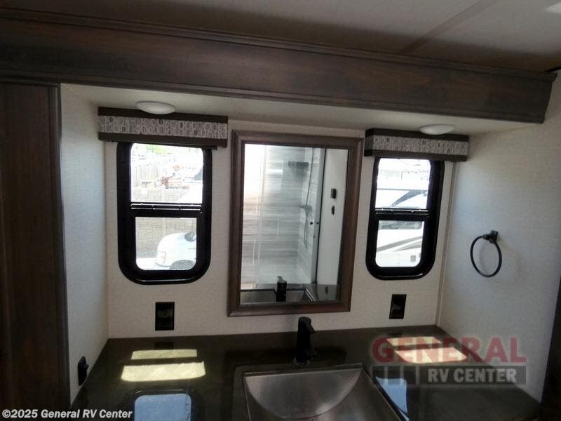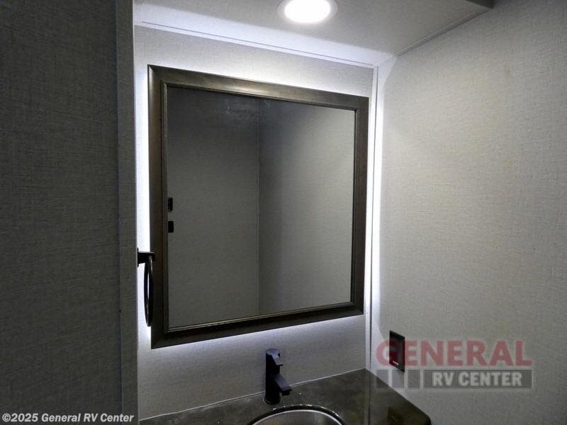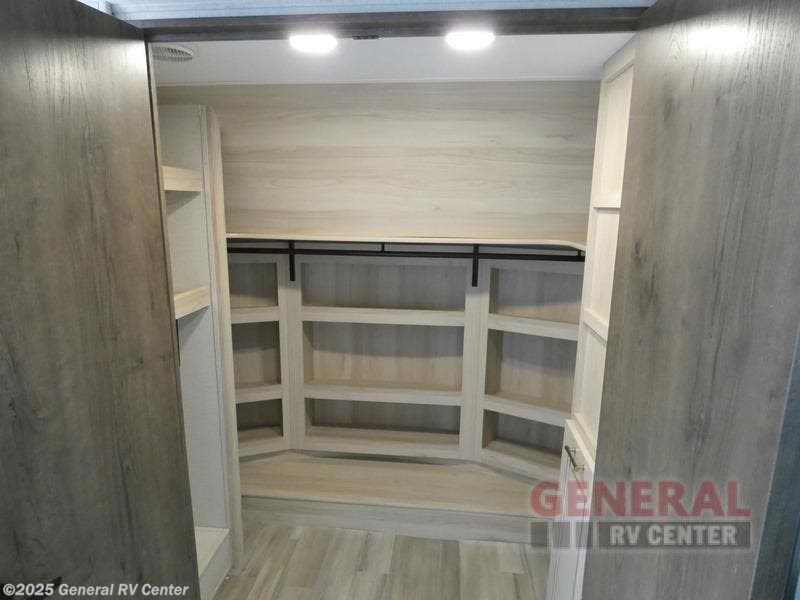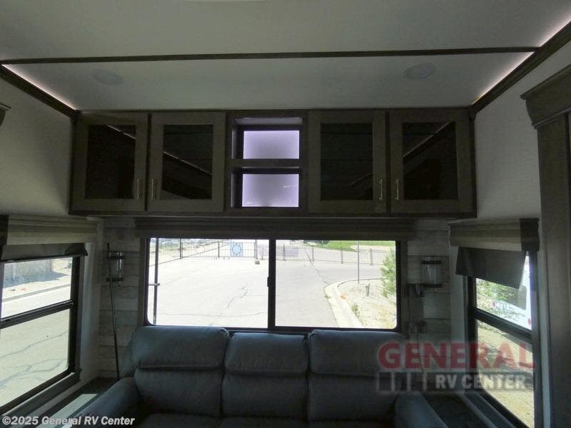 This Paradigm fifth wheel is an absolute dream! Whether it's the sunlight streaming in through the Atrium windows, or it's the bright LED dimmable lighting on the interior, you will find illumination all throughout this unit. The backlit crown molding in the living area provides an elegant feel to this already stylish fifth wheel, and modern technology is abundant with the two Smart TVs, USB charging ports, and LED motion lights in the pantry. You will be completely set for full-time living with the preparations for a dishwasher and the preparations for a washer/dryer, and the hamper in the walk-in closet will make it easy to keep your dirty clothes out of sight.