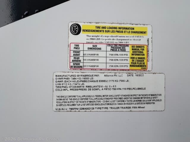 Request More Info on this 2021 Alliance RV Paradigm 370FB Offered for sale by Delmarva RV Center