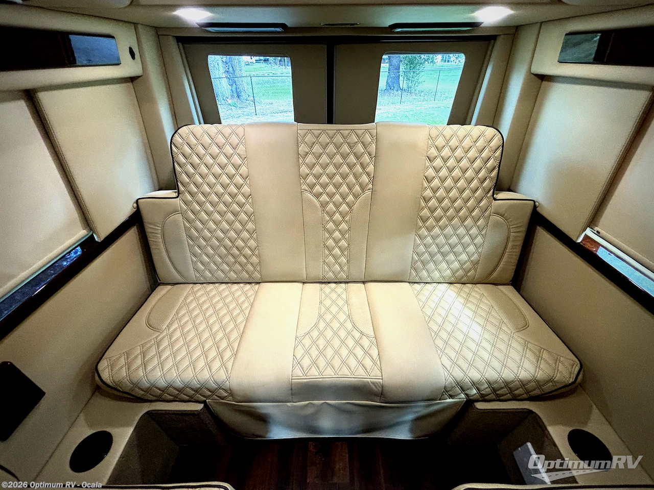 You can ride on custom seating while looking out the windows, swivel the driver and passenger seats to face the rear power folding sofa, and enjoy everywhere you decide to stop in this American Patriot Class B diesel. The chef of the family can prepare meals on the induction cooktop or use the stainless steel microwave, and the leftovers can go in the 12V refrigerator and the rolls back in the pantry. The wet bath is convenient with its shower curtain and power bath vent to keep everything fresh. You can enjoy the evening outdoors under the power awning with LED light or watch a show indoors on the LED HDTV. And you might even like to add the optional loft bed with dinette below, the choice is yours!