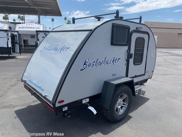 Thanks for visiting Tom’s Camperland. Please email us at , call 480-894-1267 or stop by for a tour! BUSHWHACKER TEARDROP TRAILERS The Bushwhacker was created for adventure junkies, boondocking enthusiasts, and those who forge their own paths. It’s a light, compact, and efficiently-designed teardrop trailer that’s more than ready for the great outdoors. 5,000-BTU WALL-MOUNTED A/C SYSTEM Long summer nights are no match for the Bushwhacker with an A/C system this powerful. The simple interface allows you to quickly adjust the unit and cool down the RV to the perfect temperature when the day demands it. AM/FM BLUETOOTH COMPATIBLE STEREO W/INTERIOR SPEAKERS When you want to unwind with your favorite tunes or turn up the volume for a campsite gathering, the Bushwhacker delivers with a Bluetooth enabled stereo so you can host right from your phone or favorite device. 12V, 3-SPEED VORTEX ROOF VENT Don’t want to run the A/C all day? The Bushwhacker’s roof vent makes it easy to circulate fresh air in or out of the unit. With an impressive 12V, 3-Speed setting panel, you can control the breeze as you take a break from the sun. EXTERIOR KITCHENETTE W/COLEMAN COOLER Making the most out of this compact teardrop trailer, every Bushwhacker features an exterior hatch that holds an outdoor kitchen space complete with a 2-burner Gas Cooktop, Built-in Sink, and 12V Coleman Cooler. ROOF-MOUNTED, MULTIPURPOSE GEAR RACK Just because you’re getting away doesn’t mean you can’t take your toys with you. The Bushwhacker’s gear rack is conveniently, and securely, equipped to the roof so you can bring bikes, kayaks, and more. DUAL REAR, HEAVY-DUTY EXTENDABLE STABILIZING JACKS Since you’ll be spending most of your time off the grid with these trailers, the Bushwhacker’s stabilizing jacks (complete with foot pads for extra stability) will come in handy when the terrain is hilly, rocky, and generally uneven. Torsion-Flex 2,200-lb. Independent Suspension Axle w/Electric Brakes & Maxi-Clearance Design Oversized All-Terrain Radial Tires w/Apex Gun-Metal, Rally-Sport Wheels Heavy-Gauge, Powder-Coated Wheel Fenders Oversized, Lockable Entry Doors w/Built-In Slider Windows Welded, Aluminum Framed, Main Coach-Body Construction .040 Smooth Painted Aluminum Exterior Siding High Density, Solid-Block Foam Insulation Dual Rear, Heavy-Duty Extendable BAL Stabilizing Jacks w/Foot Pads Norco Stamped, Heavy-Gauge Steel, Powder-Coated Mainframe w/EZ-Extend Hitch Jack Van-Tech Roof-Mounted, Multipurpose Gear Rack 30-AMP Converter w/30’ Detachable, Easy-Store Power Cord LED Exterior Lighting Package Dometic Combo, 2-Burner Gas Cooktop w/Built-In Sink, 10-Gal. Fresh Water Tank & Shur-Flo 12V Water Pump Heavy-Gauge, Powder-Coated Dual Battery, LP Tank & Generator Mounting Platform Under-Mount, Hidden Spare Tire w/EZ-Crank Access System Easy-plug Solar Prep Package bushwacker