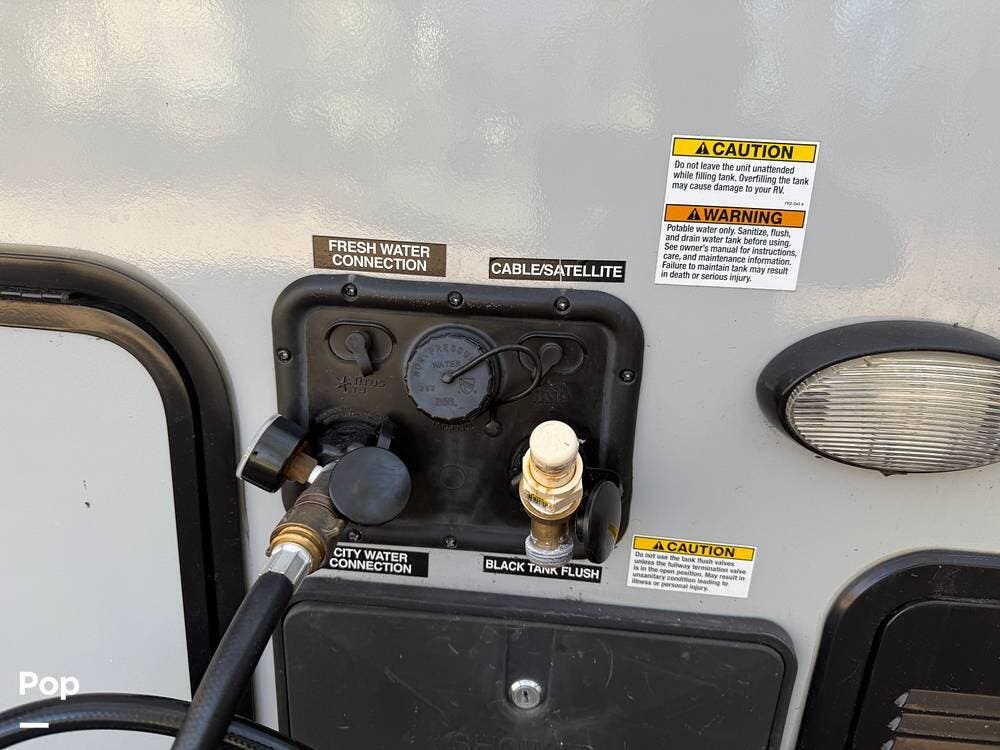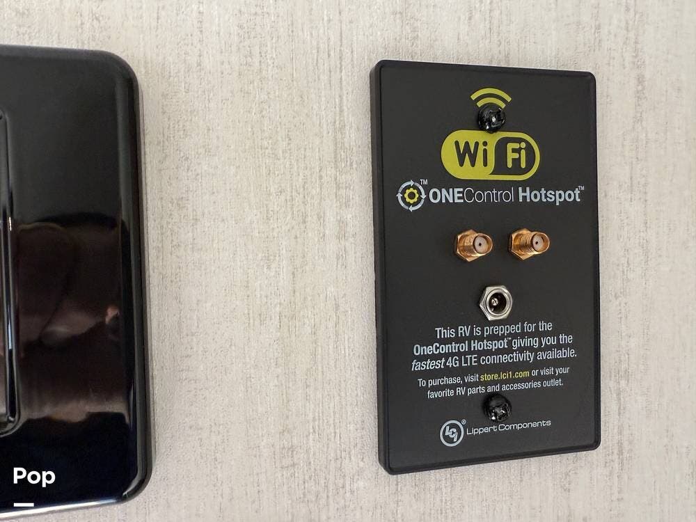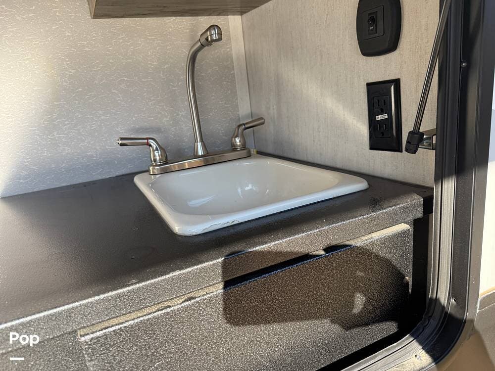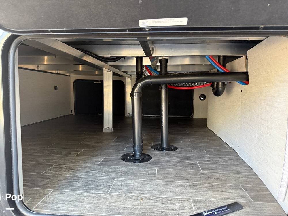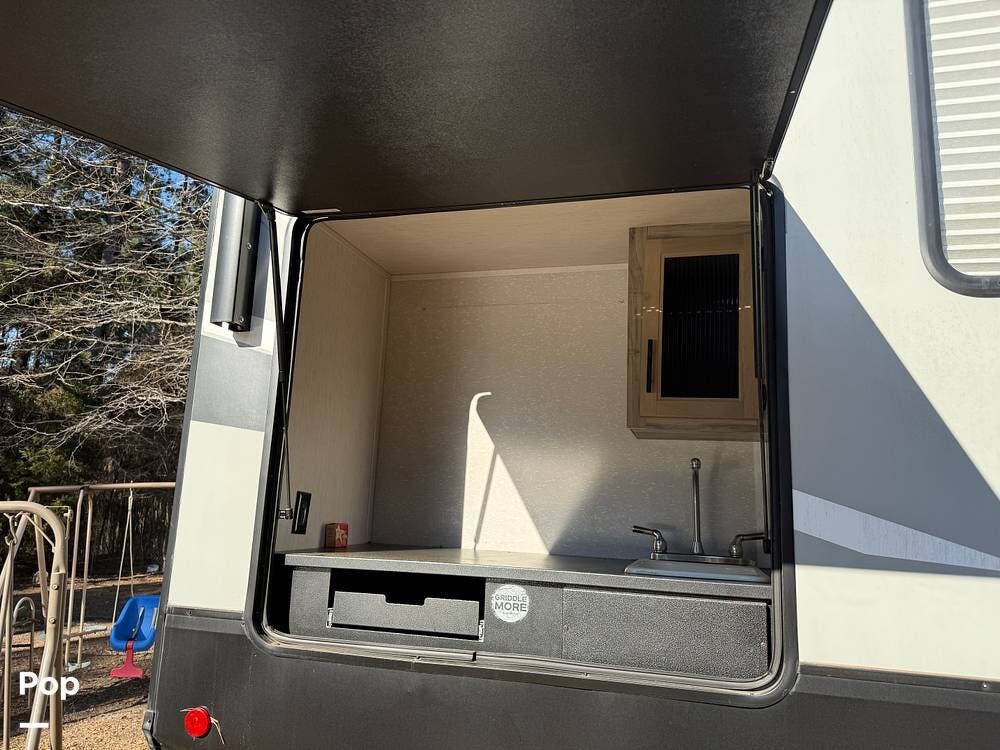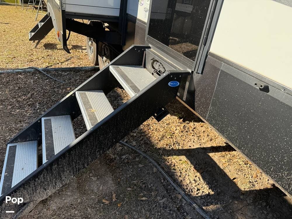 Outside, you have the convenience of two entry doors, one leading directly into the half bathroom and with a large power awning and outdoor kitchen area. This is an excellent setup for tailgating or entertaining guests.