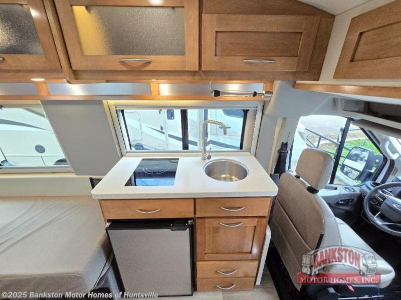 Go to infinity and beyond with this Beyond Class B gas motorhome! This coach has all of the essentials in a powerful vehicle that will fit any active lifestyle. You'll be able to tour like a pro since you have your own wet bath with flip-down sink and shower and your own galley kitchen with a two-burner LP cooktop, microwave, and refrigerator. The other features that make this coach comfortable enough to travel to far away places are the two twin-size beds, the Lagun table in between the beds, the removable table in between the cab seats, and the 24" LED Smart TV.